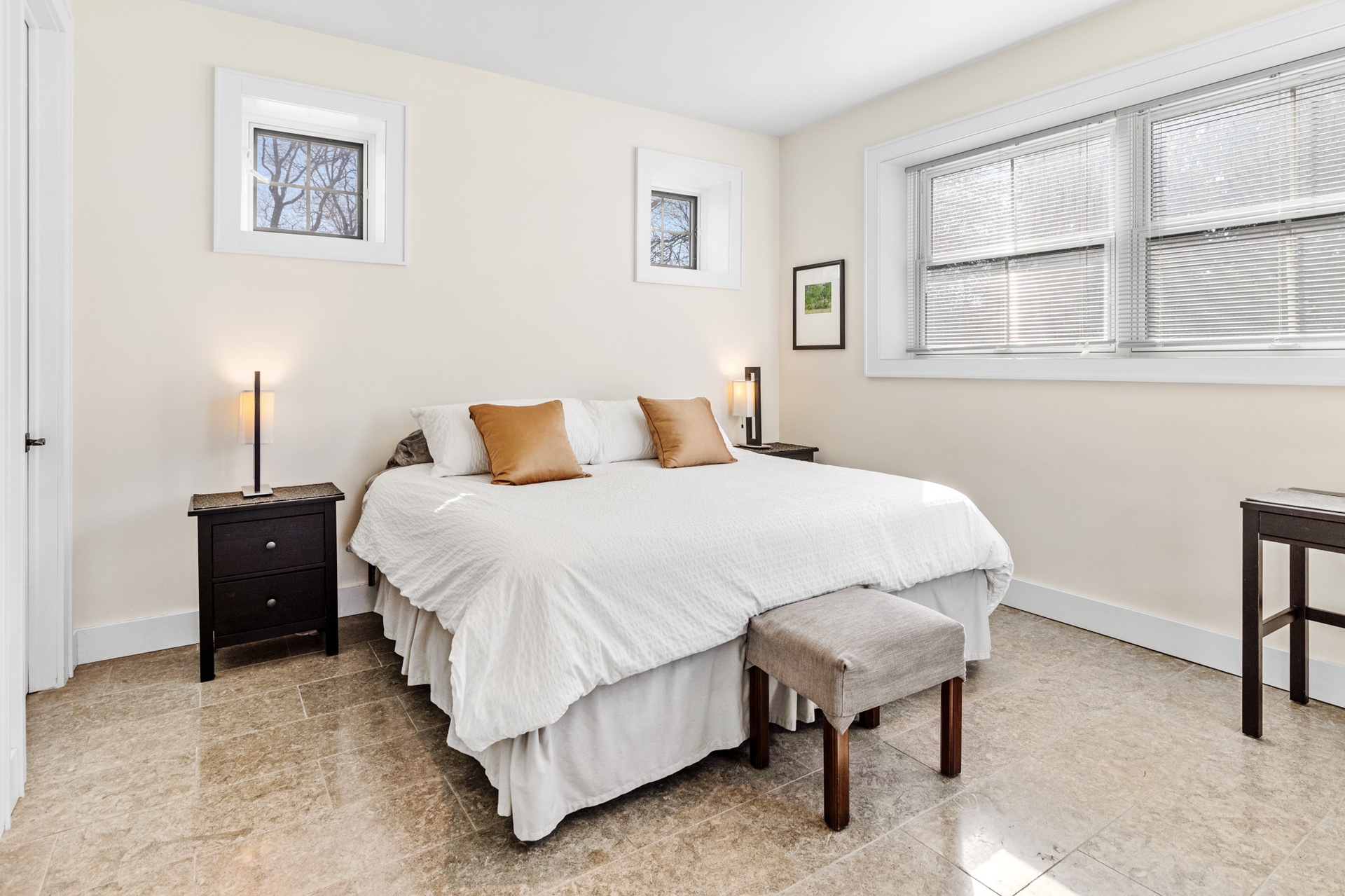 This stylishly appointed home features 3 bedrooms and 3.5 bathrooms, including a primary suite on the first floor. Upstairs, you’ll find two guest rooms and a secondary living area with a pull-out sofa for additional guests. The expansive patio overlooks the bay, offering an ideal setting for outdoor entertaining. Complete with a heated gunite pool, this home is a perfect retreat by the water.
