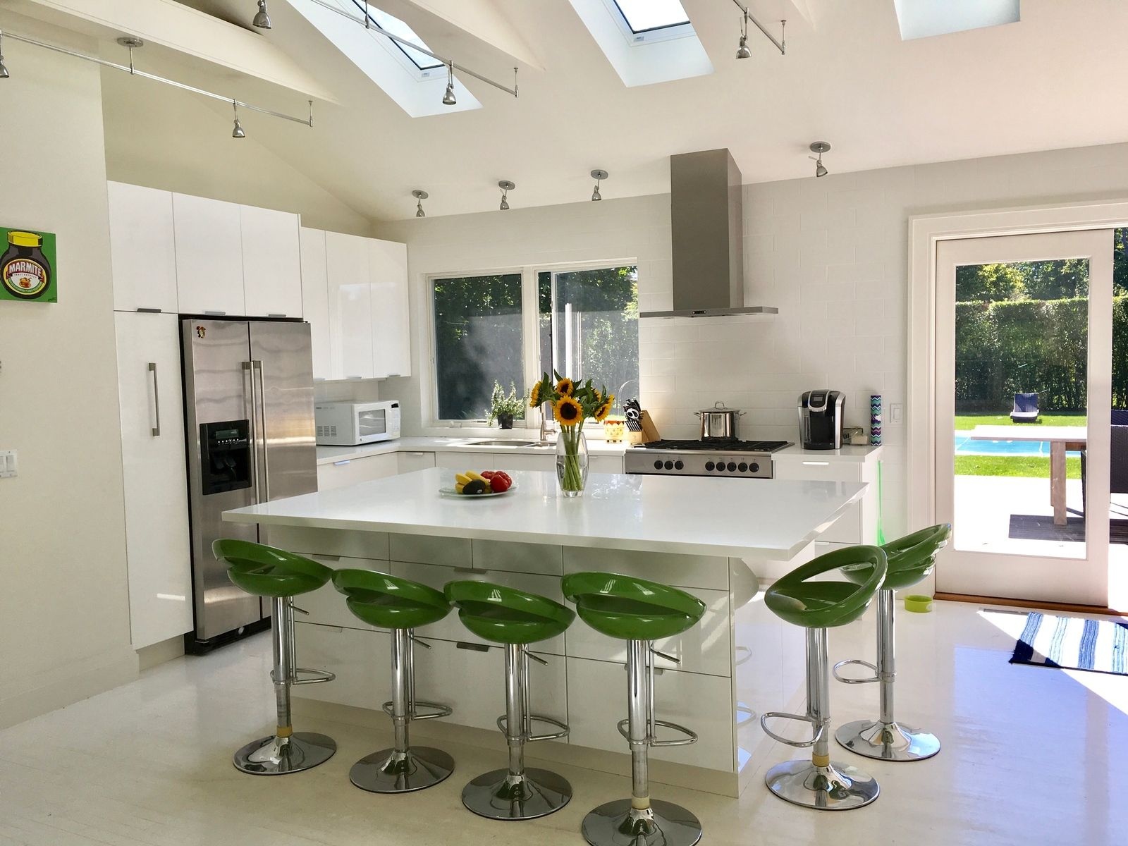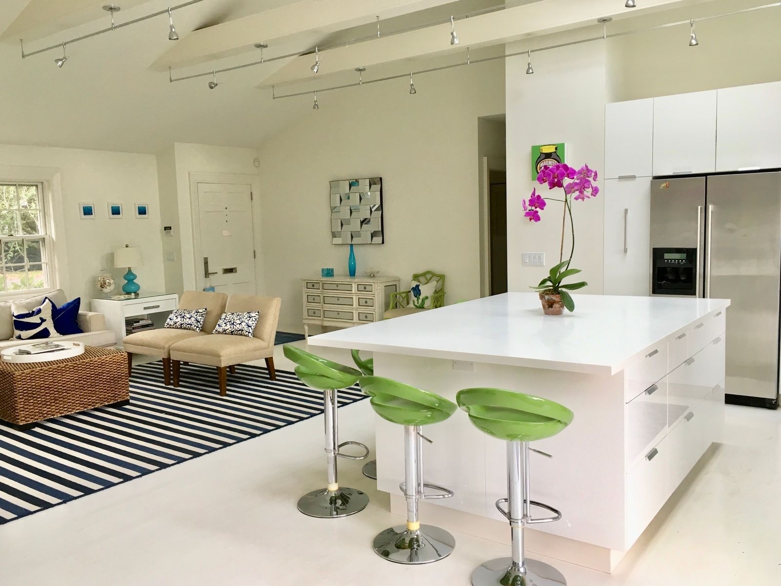 Stylish and modern renovation in Southampton Village. This home offers 5 bedrooms and 3.5 baths. Large open living spaces with vaulted ceilings, Chef's kitchen with large island. High ceilings, track lighting and white floorboards throughout create a light spacious feel. Separate dining room, and large sitting areas give rooms for all to enjoy. Lower level has a large living area with two bedrooms, one full and i half bath and laundry room. This home is a light-filled happy space, only minutes to the ocean beaches, restaurants and shops in the village. Large yard with high hedges providing lots of privacy, large deck with Propane Gas Grill, Gunite Pool. Community tennis just down the street!