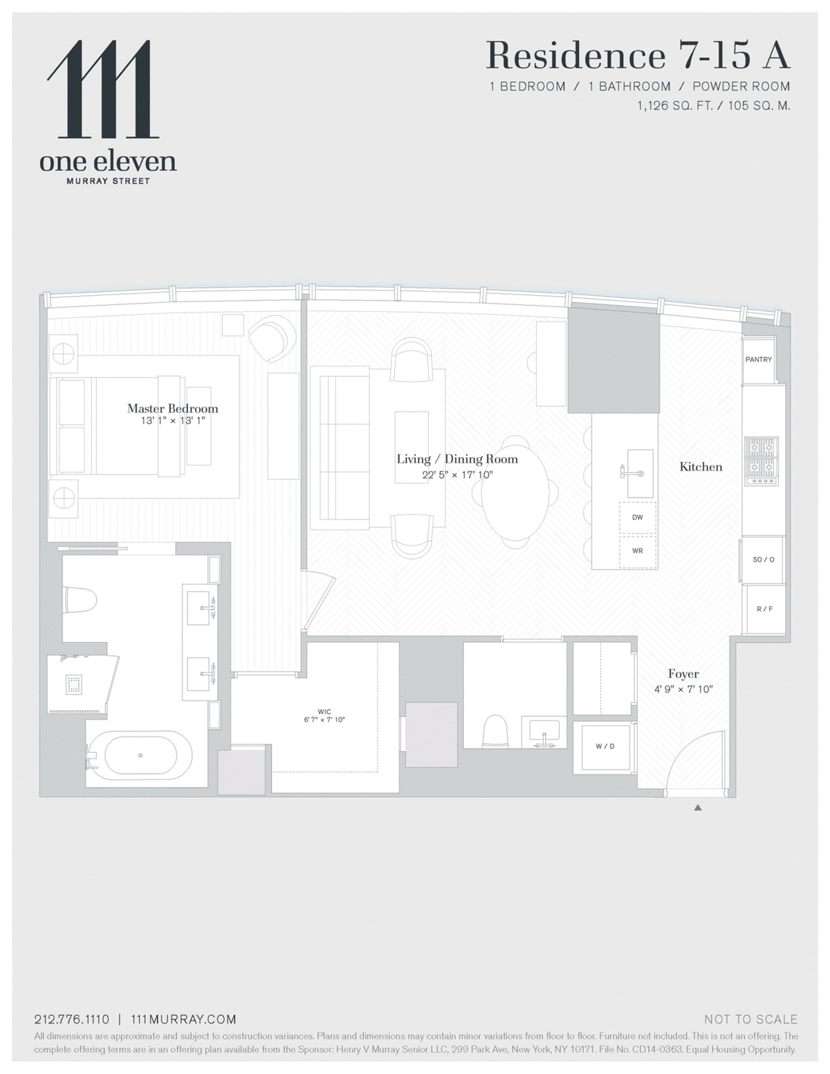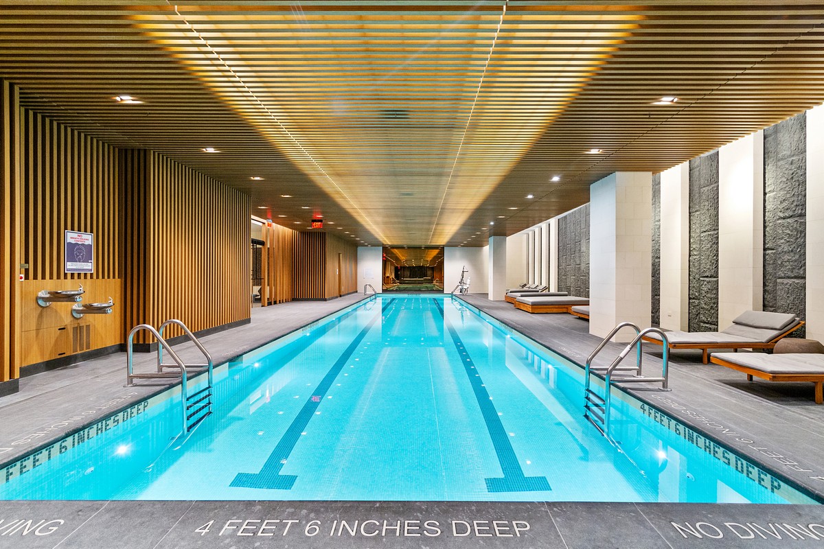 111 Murray is a world-class condominium tower located in Tribeca and offers over 20,000 square feet of private, state-of-the-art indoor and outdoor amenity spaces across two levels which includes: 75-foot lap pool, children's splash pool, a 3,000-square-foot fitness center (2 Peloton bikes) with movement studio, wellness suite with Turkish heated stone hammam, steam room, sauna, treatment rooms, hair salon; a residents' lounge with offerings at the pâtisserie and private dining room with kitchen; a playroom with interactive Imagination Playground, teen arcade room fitted with classics like skee ball and pinball, media room; a private aircraft concierge service, and gorgeous landscaped gardens, seamlessly integrating the interiors with the outdoors. Architecture by Kohn Pedersen Fox, residence interiors by David Mann, amenities and public spaces by David Rockwell, and landscape architecture by Edmund Hollander. 111 Murray Street is surrounded by best-in-class dining and all the conveniences of downtown living with Whole Foods right next door.
