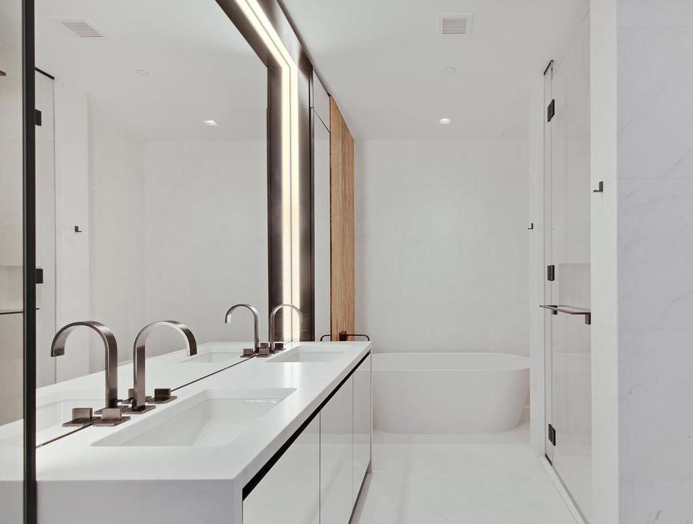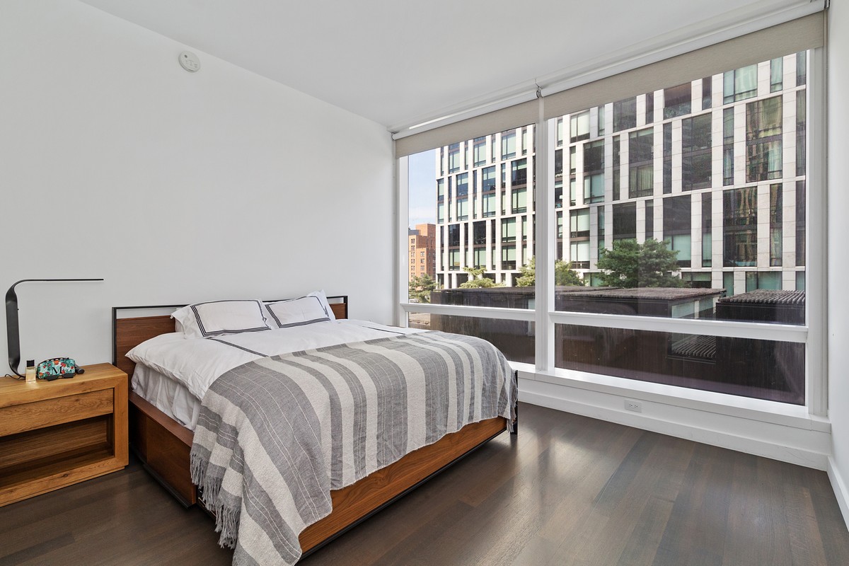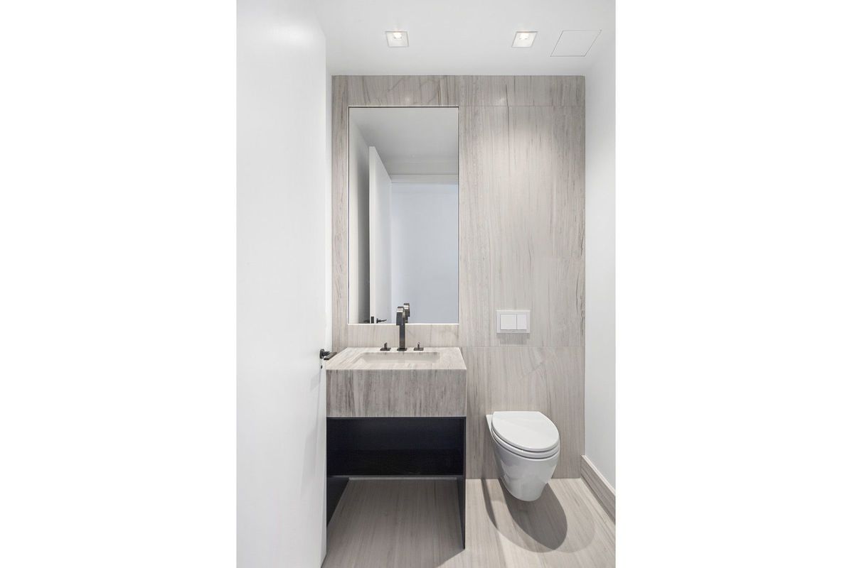 As you enter into this spacious 1-bedroom, 1.5-bathroom residence facing North, you will notice the floor to ceiling double paned windows with beautiful white oak herringbone floors and meticulously designed open kitchen with a Calacatta Borghini marble island. Equipped with top-of-the-line appliances by Wolf, Miele, and Sub-Zero including a 30-in. refrigerator/freezer, 30-in. 4-burner gas cooktop with built-in canopy hood, integrated dishwasher, wall oven, speed oven, and wine refrigerator. A beautiful powder room, LG washer and vented dryer, and central air further distinguish this truly outstanding residence. The luxurious primary bedroom suite offers a California Closets-designed walk-in closet and master bath with travertine stone slab feature walls, custom white marble slab double vanities with Dornbracht fixtures in a custom soft black-matte finish, a freestanding BluStone soaking tub, and separate shower.