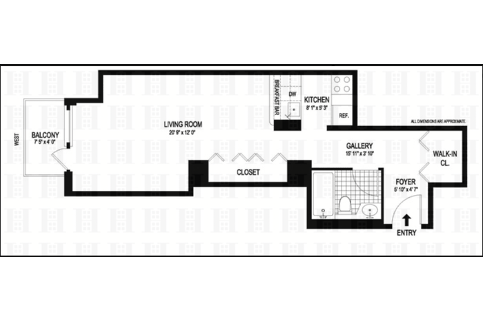 Wake up to the sounds of birds singing in this renovated large studio. Best of all; step out onto your private balcony overlooking the gardens at World Wide Plaza. New floors, new granite and stainless steel appliances, pass through kitchen with breakfast counter and large closets makes this a perfect home. In the center of it all, this quiet, bright west facing condominium home is located in a full service building featuring 24 hour doormen, health club, garage and roof deck. Transportation, theaters and shopping as well as Central Park, Times Square, Time Warner Center and Lincoln Center are all nearby. Laundry on floor.