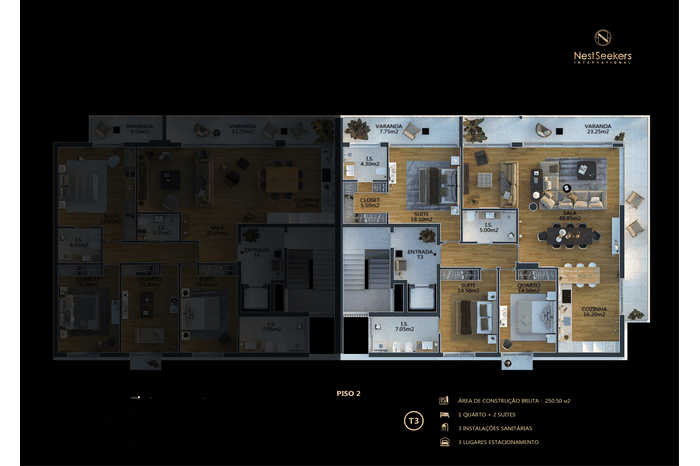 This excellent 3 bed apartment is located on the second floor with an area of 218sqm. It has large open areas with a living and dining room of about 37 square meters, gourmet kitchen with state-of-the-art appliances, unique custom made details providing the outmost comfort, 2 en-suite bedrooms and a restroom. The apartment also enjoys a balcony of 23 sqm.
