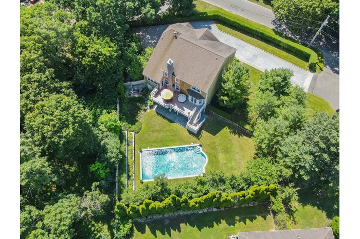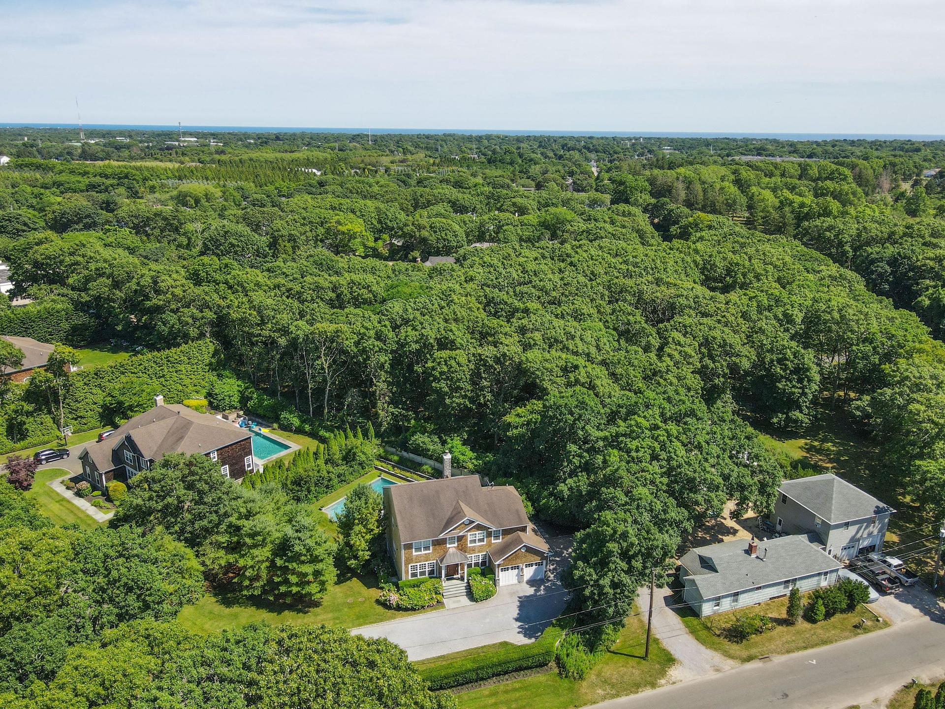 Moments to the Village and Coopers Beach. A custom home by one of the area's top builders. 4,000+sf of luxury living on three levels with 6 bed and 5.5 baths. Gracious entry way with formal living and dining rooms. Soaring great room with wood burning fireplace and an open eat-in Chef's kitchen with a Viking appliance suite. The first floor master suite leads out the extensive decking overlooking the well-manicured property. A side entrance mud room, laundry and 2 car garage complete the first floor. Ascend the grand staircase to the upper level with 2 ensuite guestrooms and 2 bedrooms with a shared bath. The finished lower level boasts a full walk out to the pool deck. Rec area with billiards and a full splash bar, gym and full bath. Outback a heated Gunite pool, outdoor shower and mature landscaping package wrap this lush hideaway.