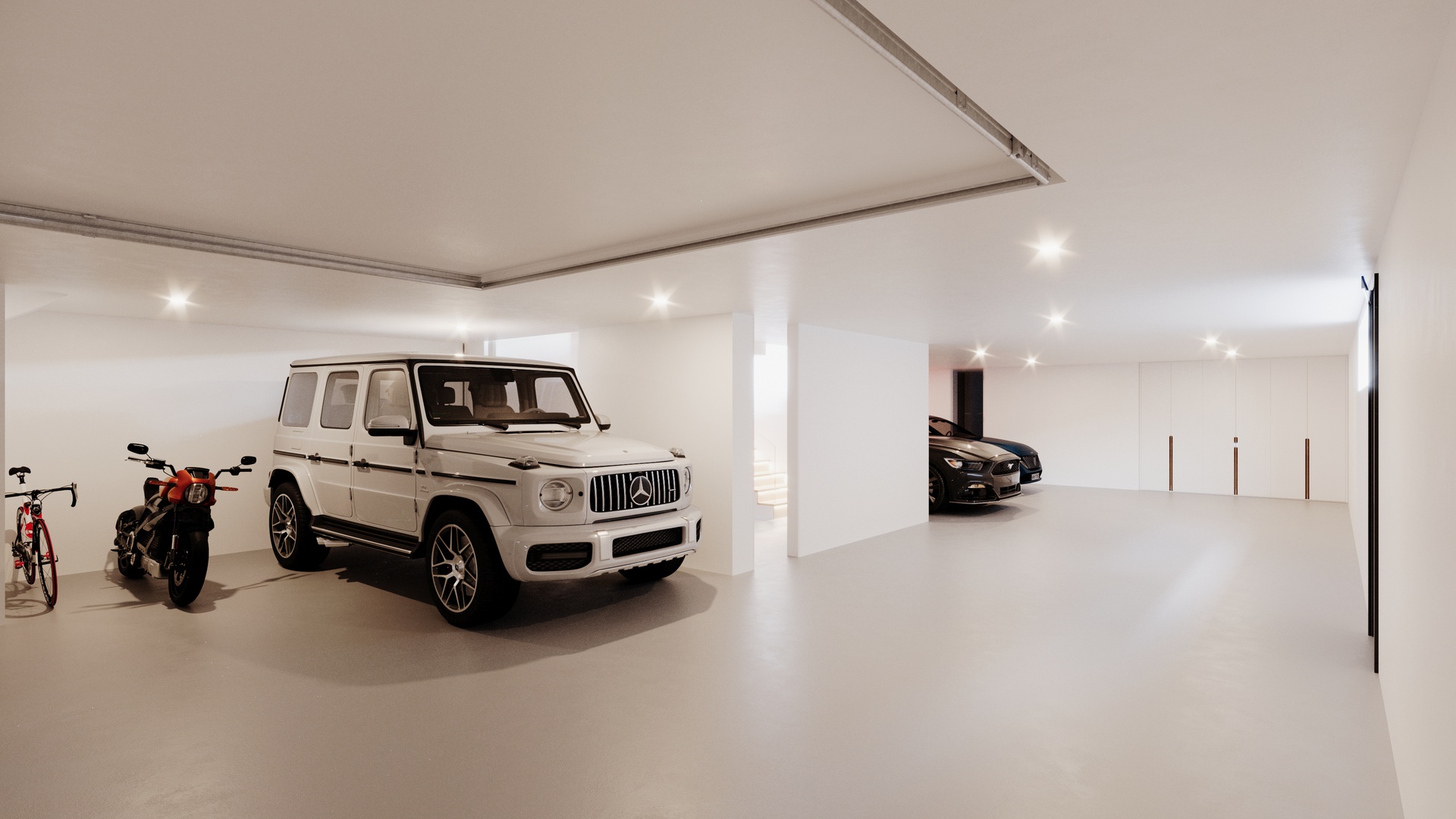 Incredibly large basement of 221 sqm. The space is divided into a private garage for 4 cars, an en-suite with natural light, laundry area and storage room. Interior access to the upper floor via elevator and staircase, as well as direct exit to the terrace.
