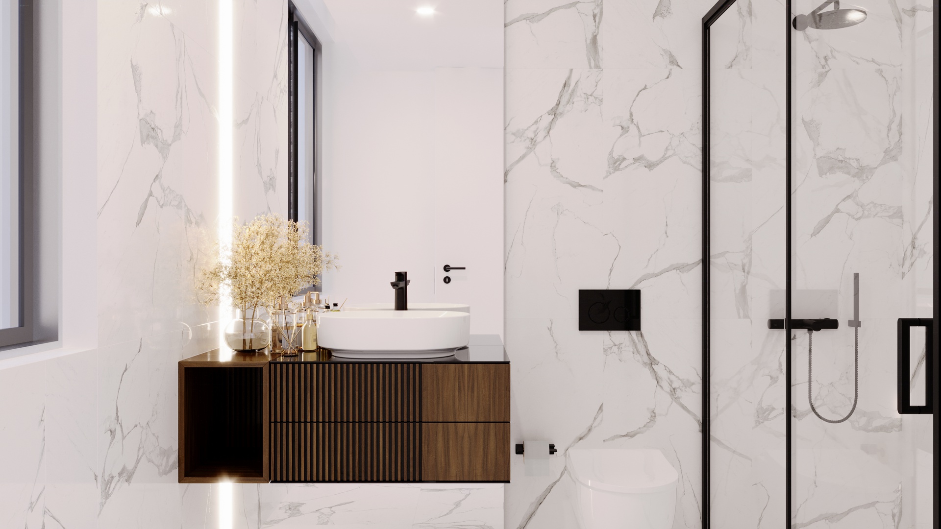 The first floor of 141 sqm there are 3 en-suites and 1 master en-suite with a walk-in closet, all with access to a 23sqm balcony.