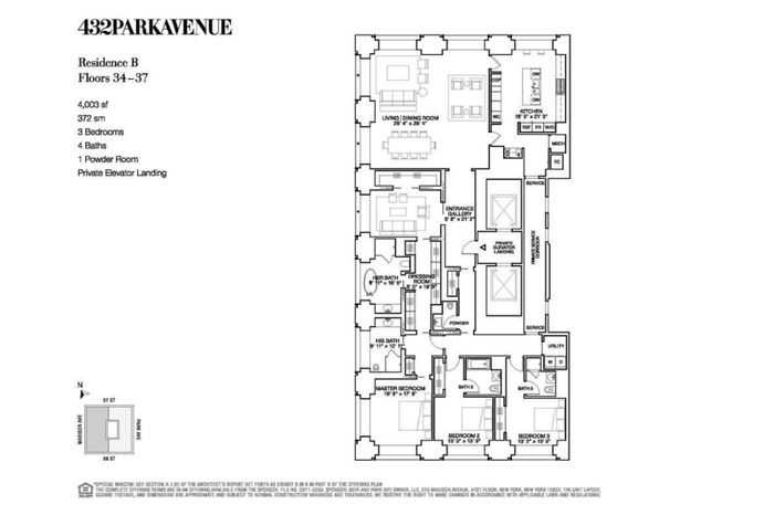 Residence 35B at 432 Park Avenue Four Bedrooms Four Baths Library Powder Room 4, 003 sqft Residence 35B at 432 Park Avenue is a half floor residence featuring a perfect ...