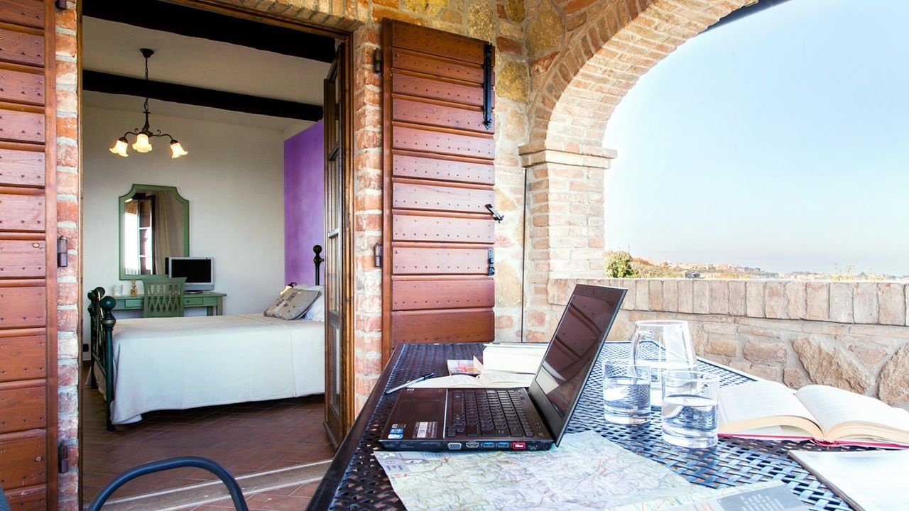 The dependance consists of a small house with bedroom, bathroom and kitchenette as well as the technical room and an office.