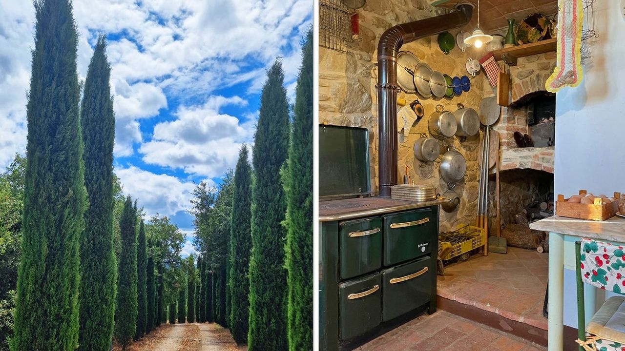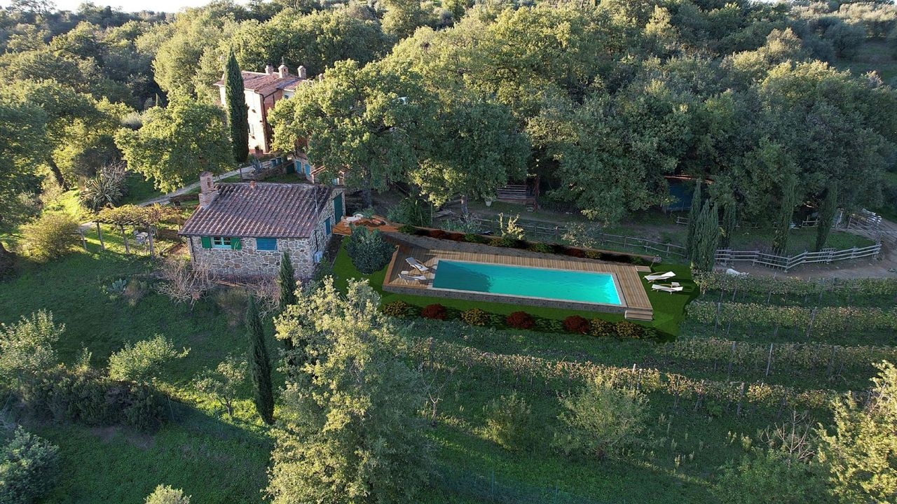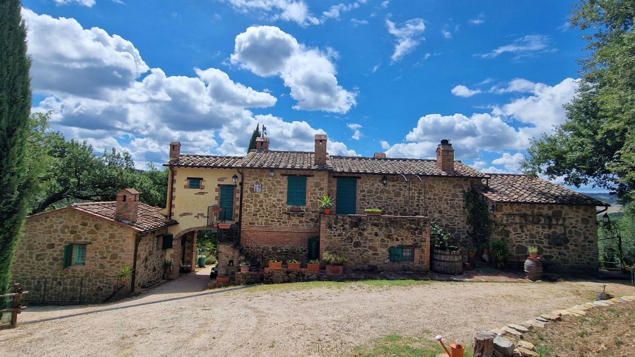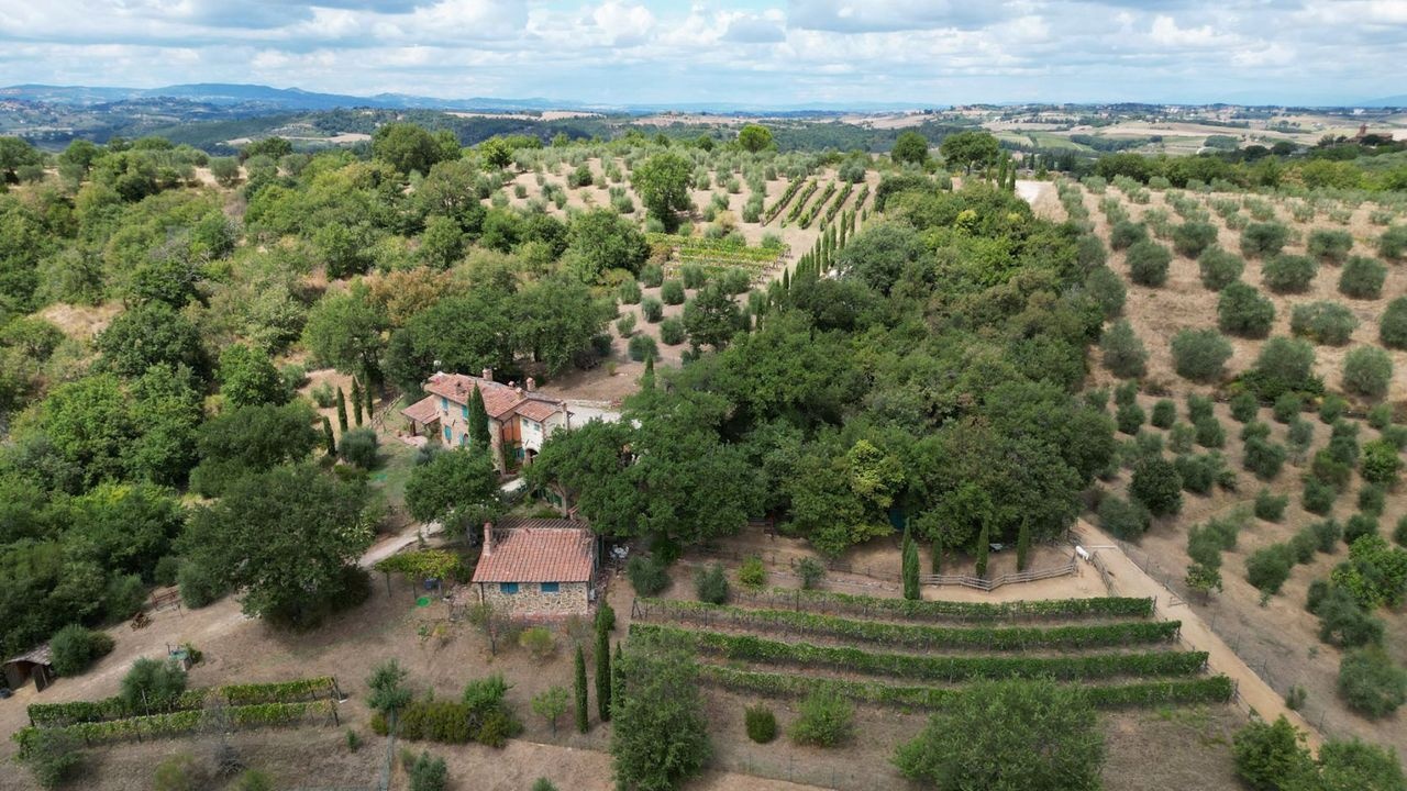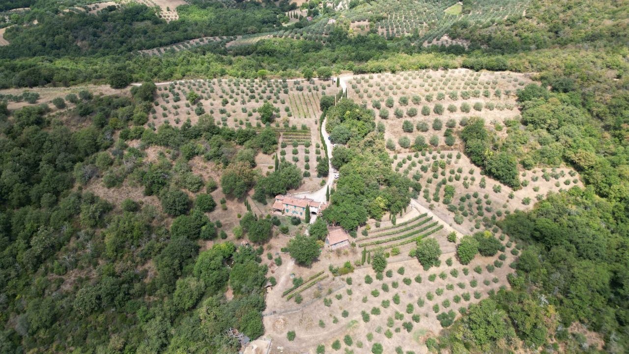 The land includes a rural courtyard, meadows, areas for vegetable gardens and saffron, as well as olive groves, vineyards, arable land and woodland.