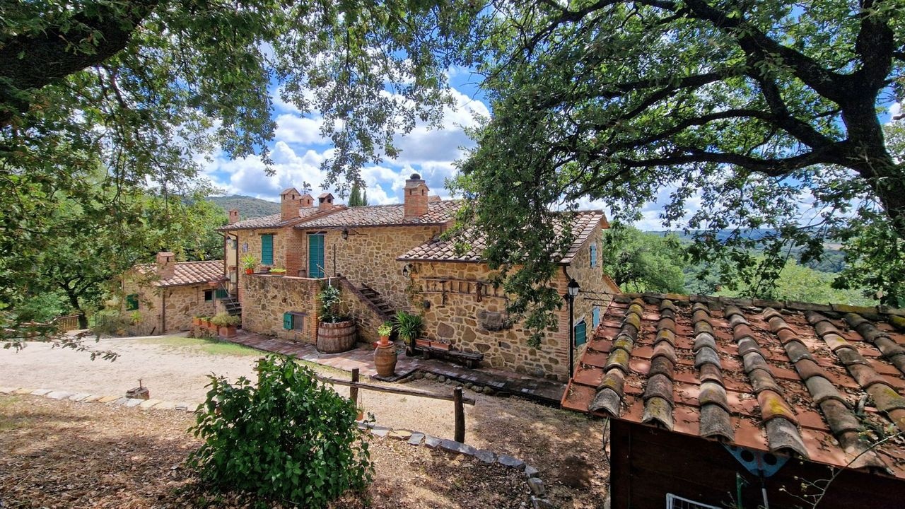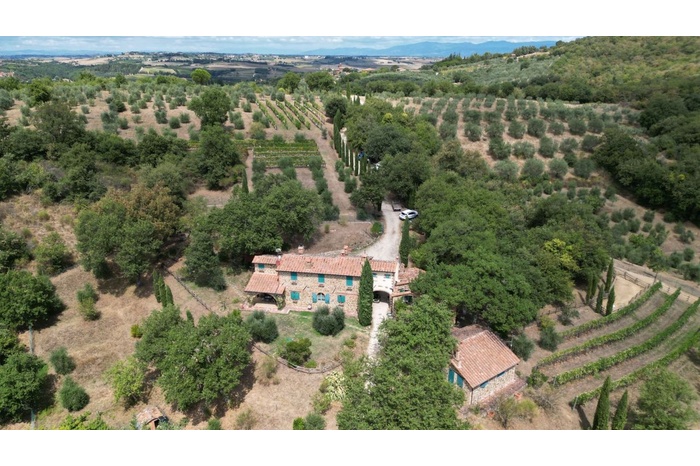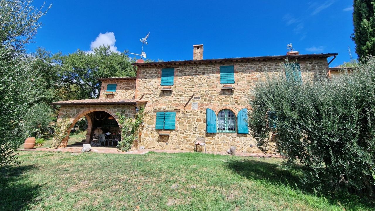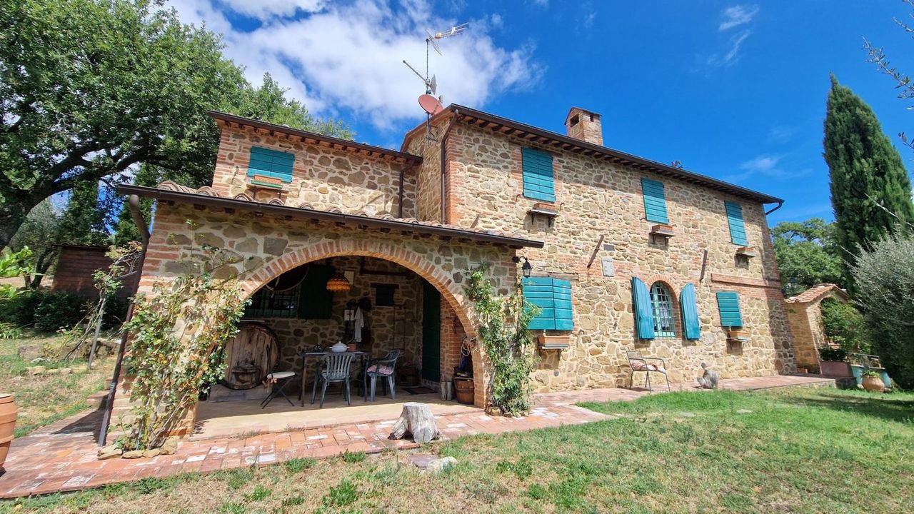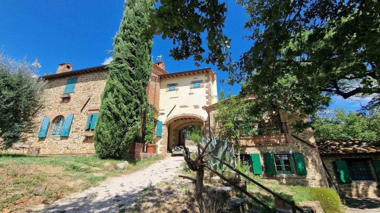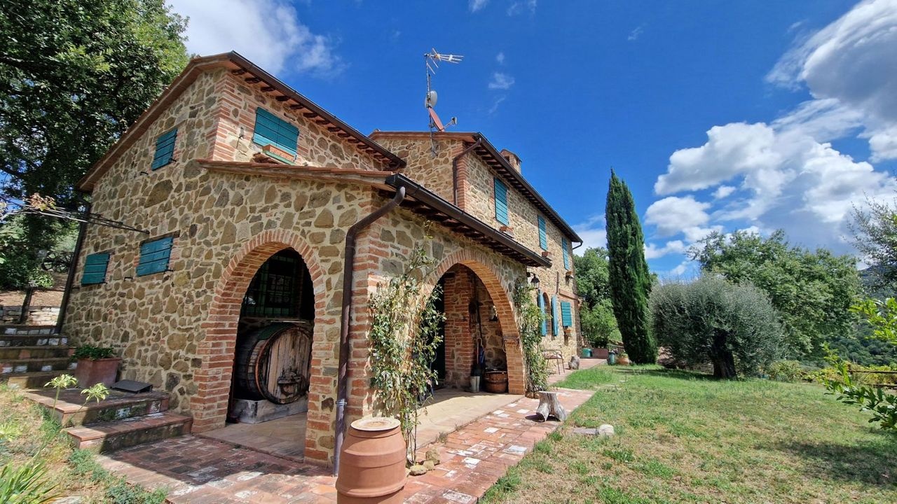 Splendid country property surrounded by approximately 10 hectares of land with olive groves, vineyard, arable land and woods for sale in a panoramic position overlooking the verdant Umbrian countryside, on one of the most unspoilt landscapes among woods, olive groves and vineyards, not far from Città della Pieve.