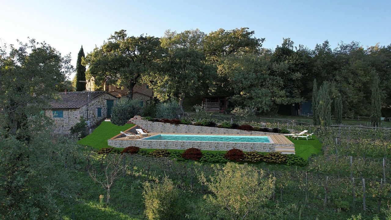 Farm with farmhouse for sale in Umbria, Città della Pieve, Perugia. Farmhouse in a panoramic position, 10 hectares of woodland, olive grove, vineyard