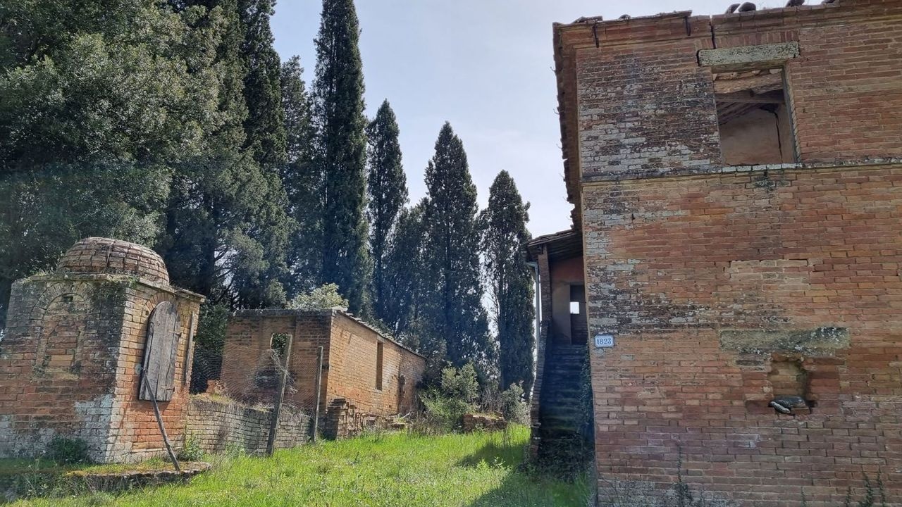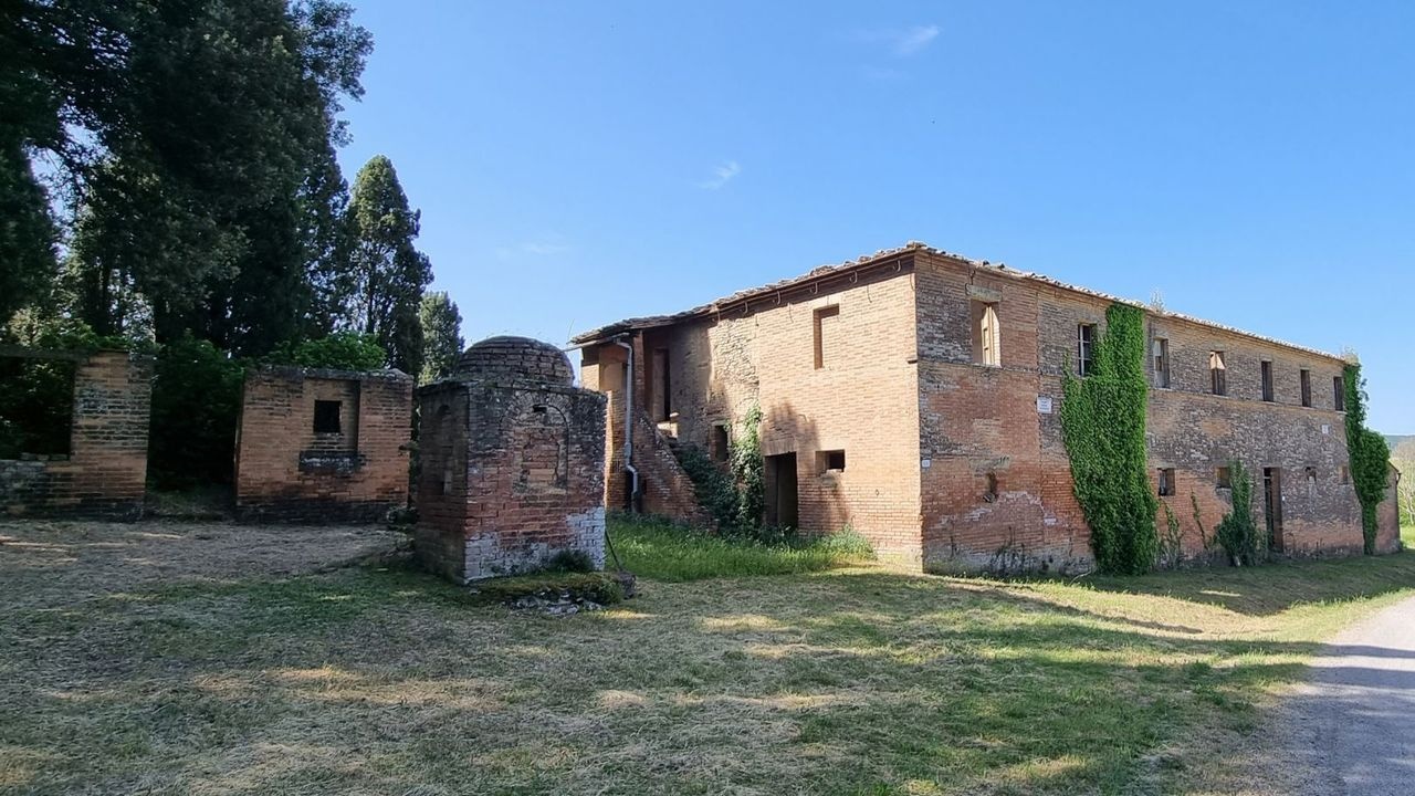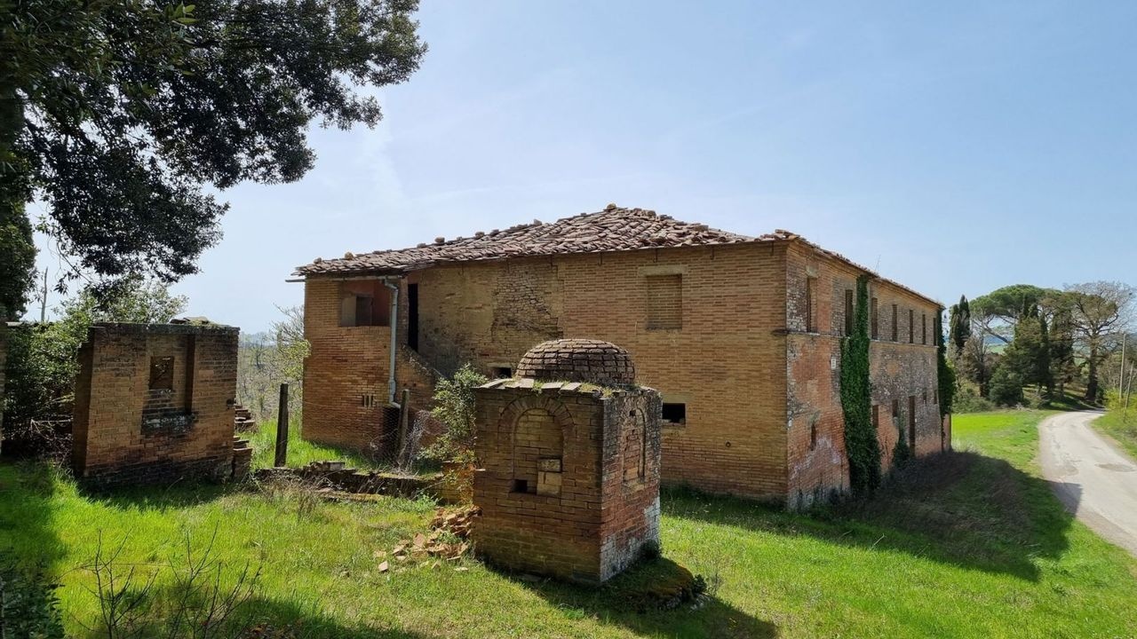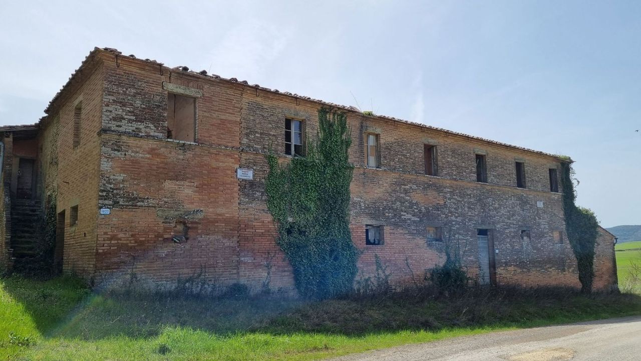 Ancient Tuscan farmhouse to be restored for sale in Monteroni d'Arbia, Siena. Farmhouse for sale in a panoramic position overlooking Montalcino