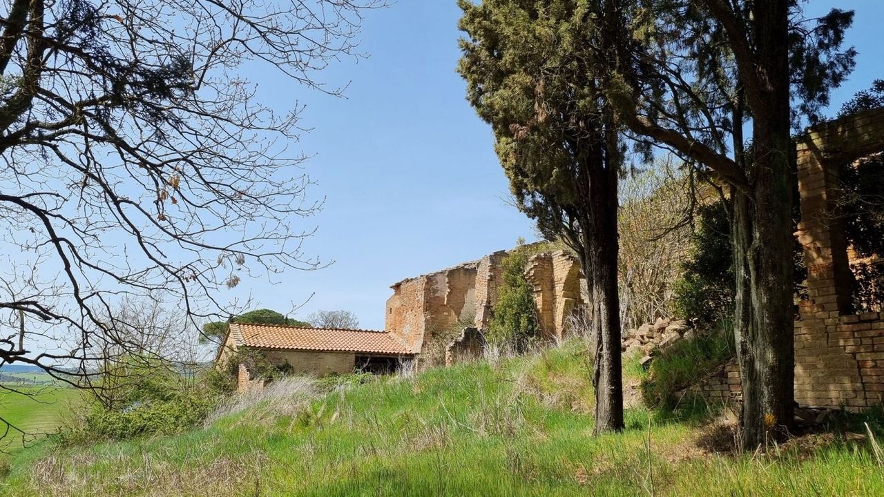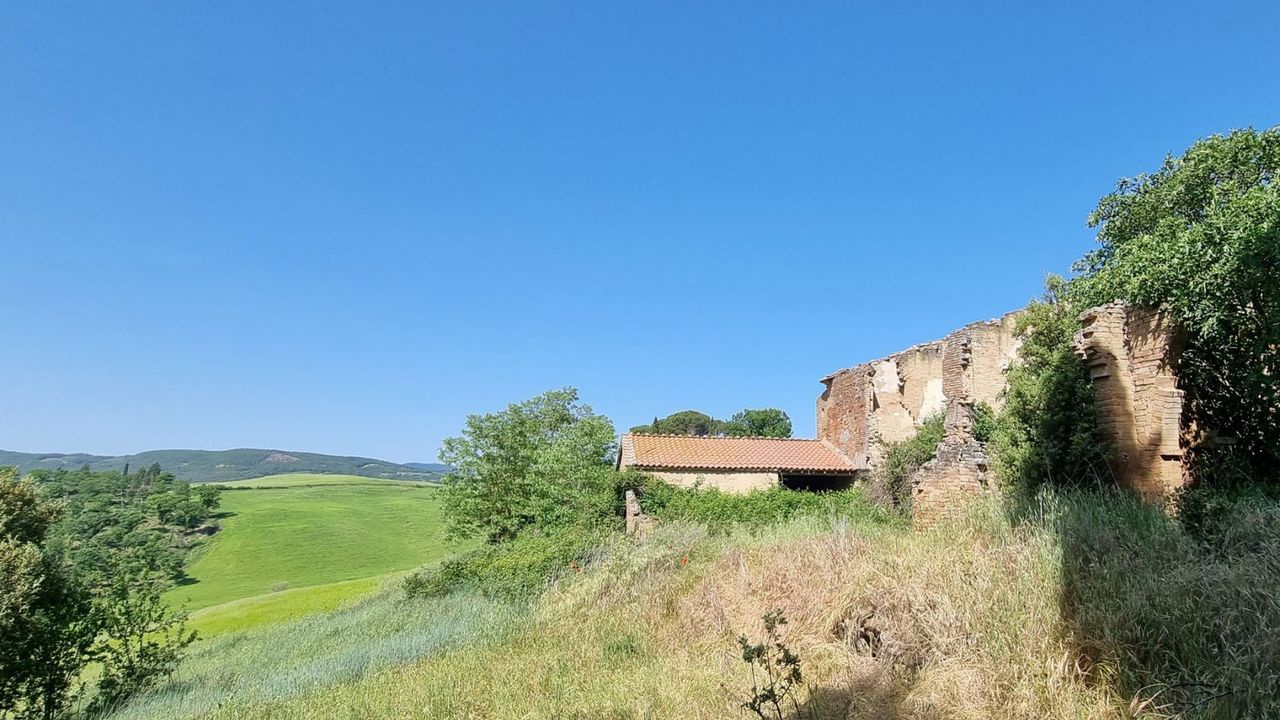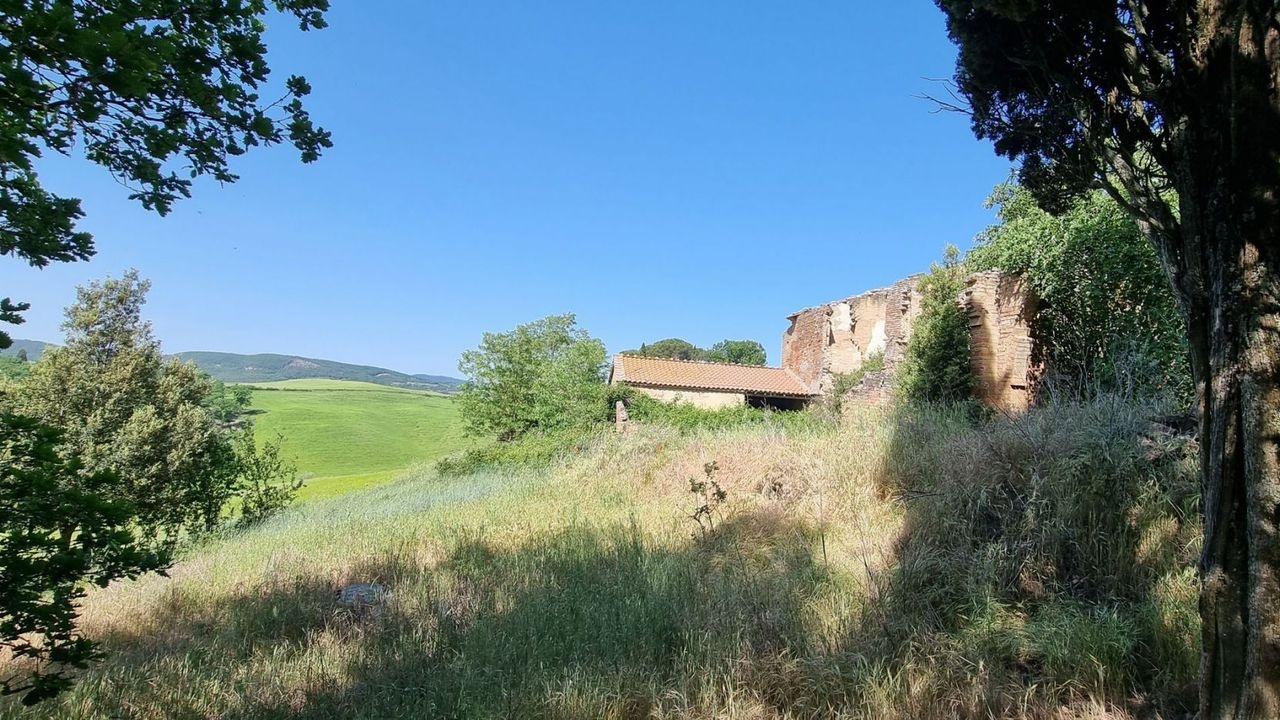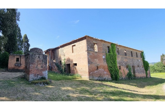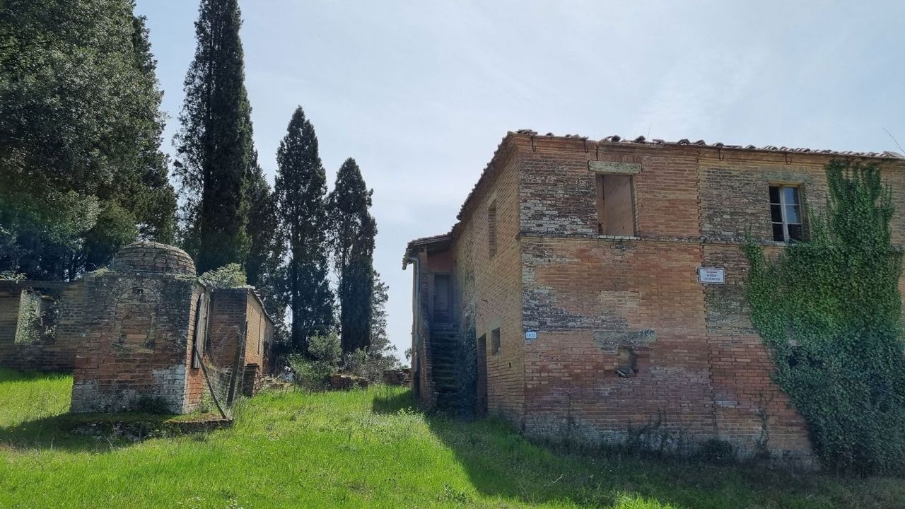 Ancient Tuscan farmhouse to be restored for sale in Monteroni d'Arbia, Siena. Farmhouse for sale in a panoramic position overlooking Montalcino