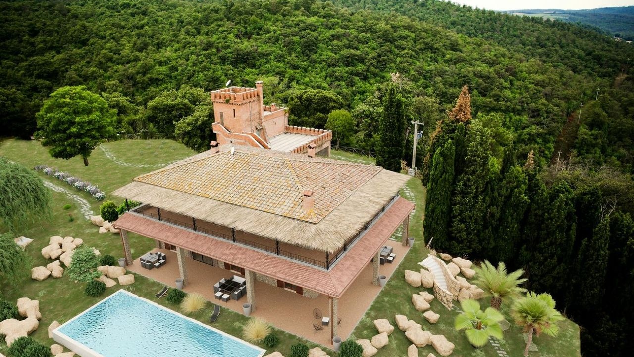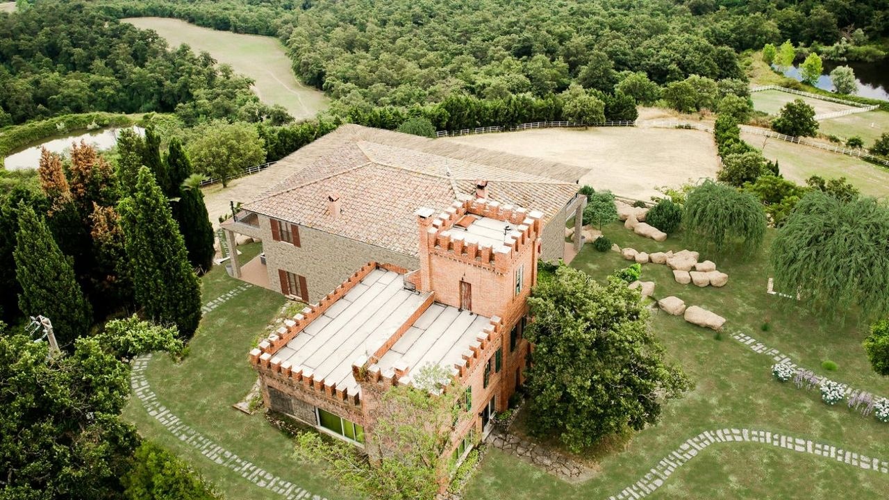 The complex for sale has a total surface area of 2,000 sqm and includes the majestic 700 sqm small castle, which has been partially restored, and a series of outbuildings scattered in the immense greenery.