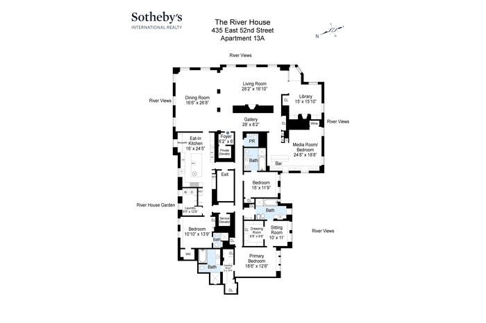 The apartment has the unique and rare amenity of a Lifetime Membership to the River Club, located inside the River House, which transfers to the new purchaser (an initiation fee applies if purchaser is not currently a River Club member) allowing a luxurious lifestyle including swimming pool, squash courts, tennis courts, fitness center, golf simulator, library, grand dining room and bar overlooking the East River, ballroom, guest rooms, and dinner catered to the apartment by the River Club.