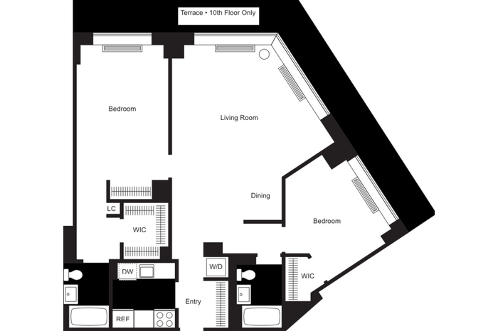 Corner 2 Bedroom, 2 Bath featuring northern exposure with Union Square Park views, in-home washer/dryer, plenty of closet space, upgraded strip wood flooring, solar shades and upgraded stainless steel appliances.