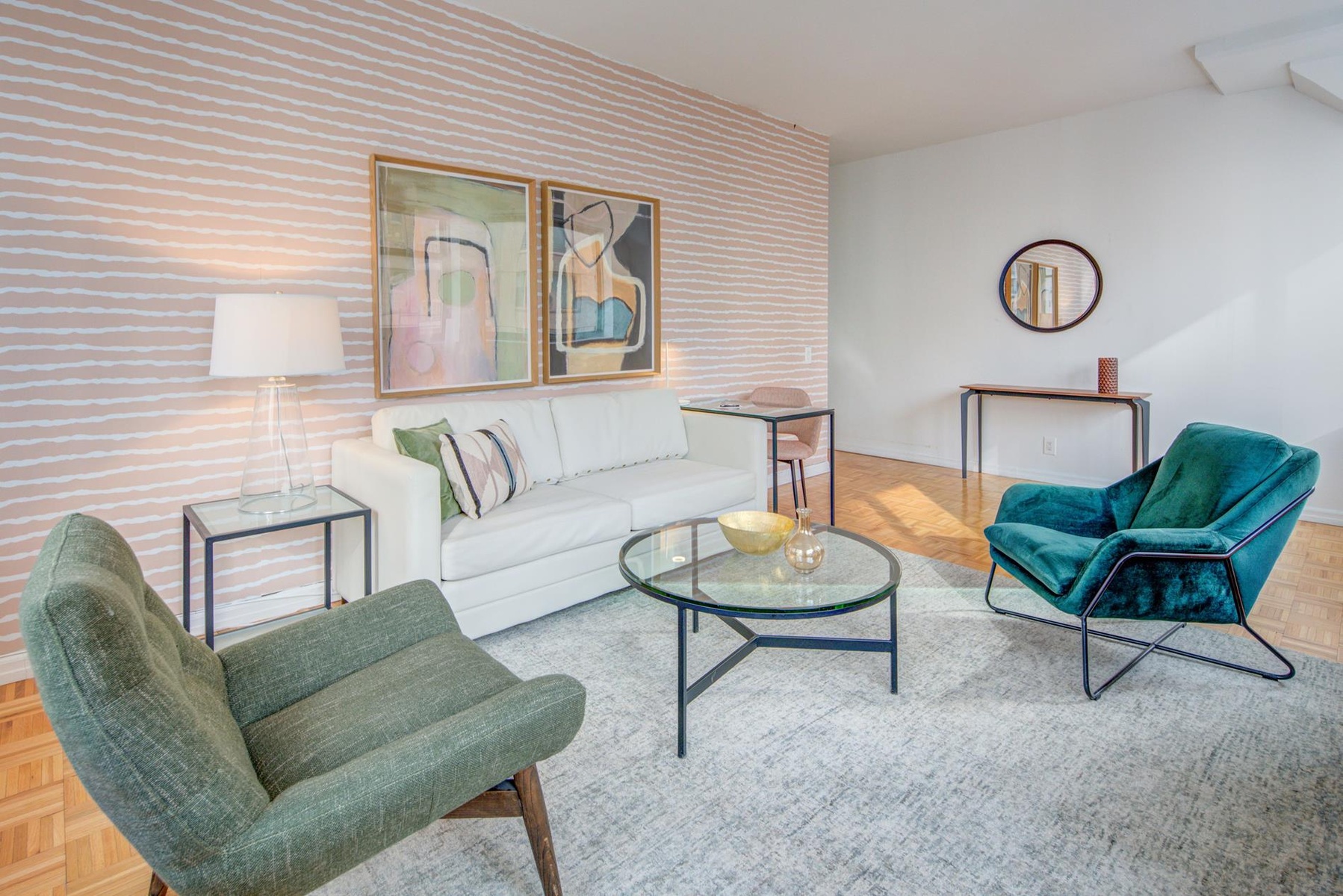 Once known as the FBI headquarters, The Fairfax has a unique architectural and historical background. With its varied layouts, The Fairfax offers all of the comfort and sophistication one could ask for in a luxury residence. These refined apartments feature plenty of light through sound-resistant windows, striking 9-foot beamed ceilings, generous closet space, and sleek, renovated kitchens and baths.