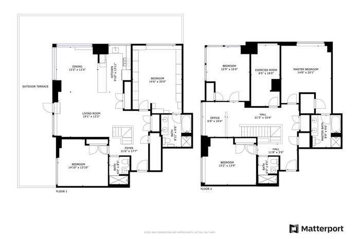 Upon entering the apartment, find a spacious living room and dining room that flow seamlessly into a modern, open-plan kitchen outfitted with granite countertops and top name Viking and Bosch appliances, and an appliance garage. From the living and dining area, you may also enter onto your own private 1,100 square foot terrace. Meticulously landscaped and cared for, this terrace is the perfect place to dine al fresco with a living room area and a dining room area that seats six—the perfect layout for the avid entertainer, with enough space for a hot tub, and a screen to watch movies in the outdoors.