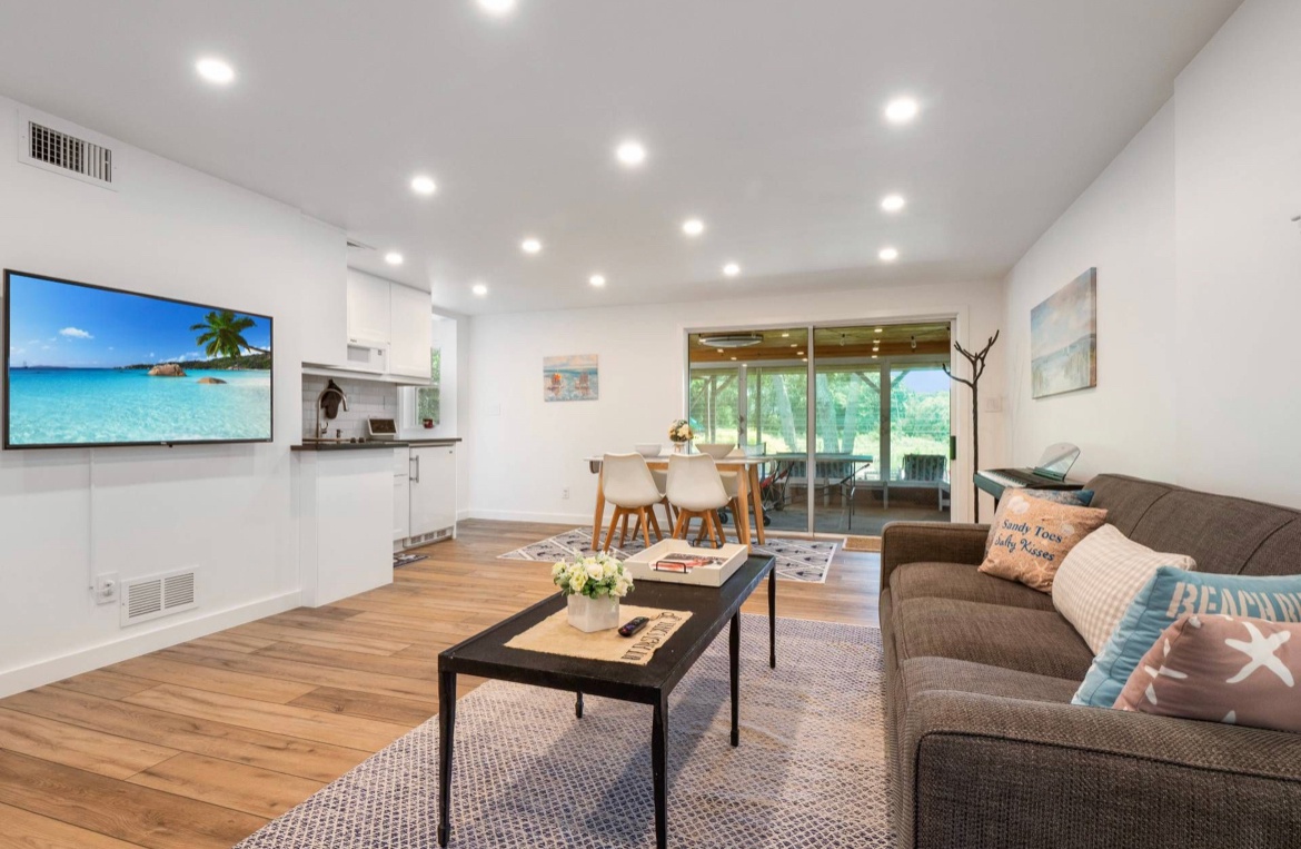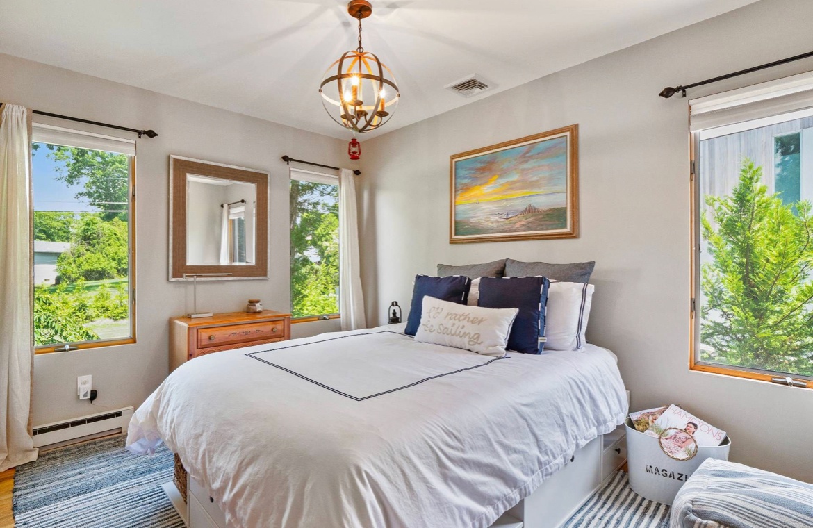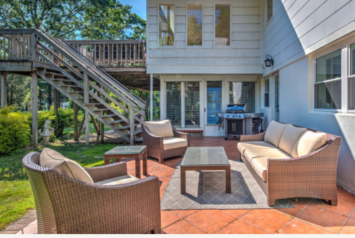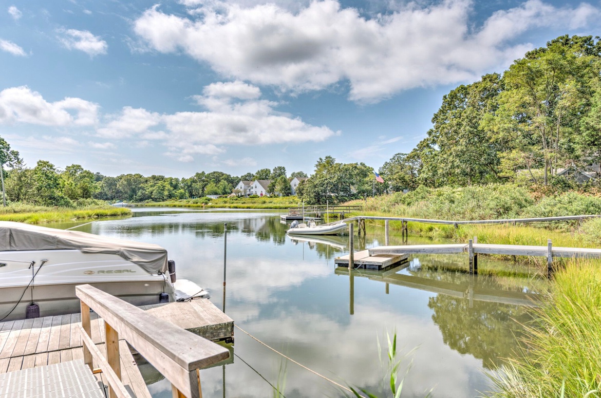 Great waterfront home with dock. Keep your boat, kayak or paddle boards at this great property located in Southampton Cove. Upstairs are three bedrooms and full bath. Large eat in kitchen with all glass views out to the cove, large sliders lead to oversized wrap around deck, perfect for entertaining or relaxing. Downstairs are two bedrooms, living room, kitchenette, Florida room with views out to the water. Laundry room. The dock is oversized and lighted for evening sitting out on the Adirondack chairs and watching the sunset. The house is a Google/Nest/Lutron smart house. Hi speed wifi, smart home speakers throughout. Perfect home for a summer escape, close to Towd Point, Conscience Point Marina and about a 10 minute drive to the village of Southampton.