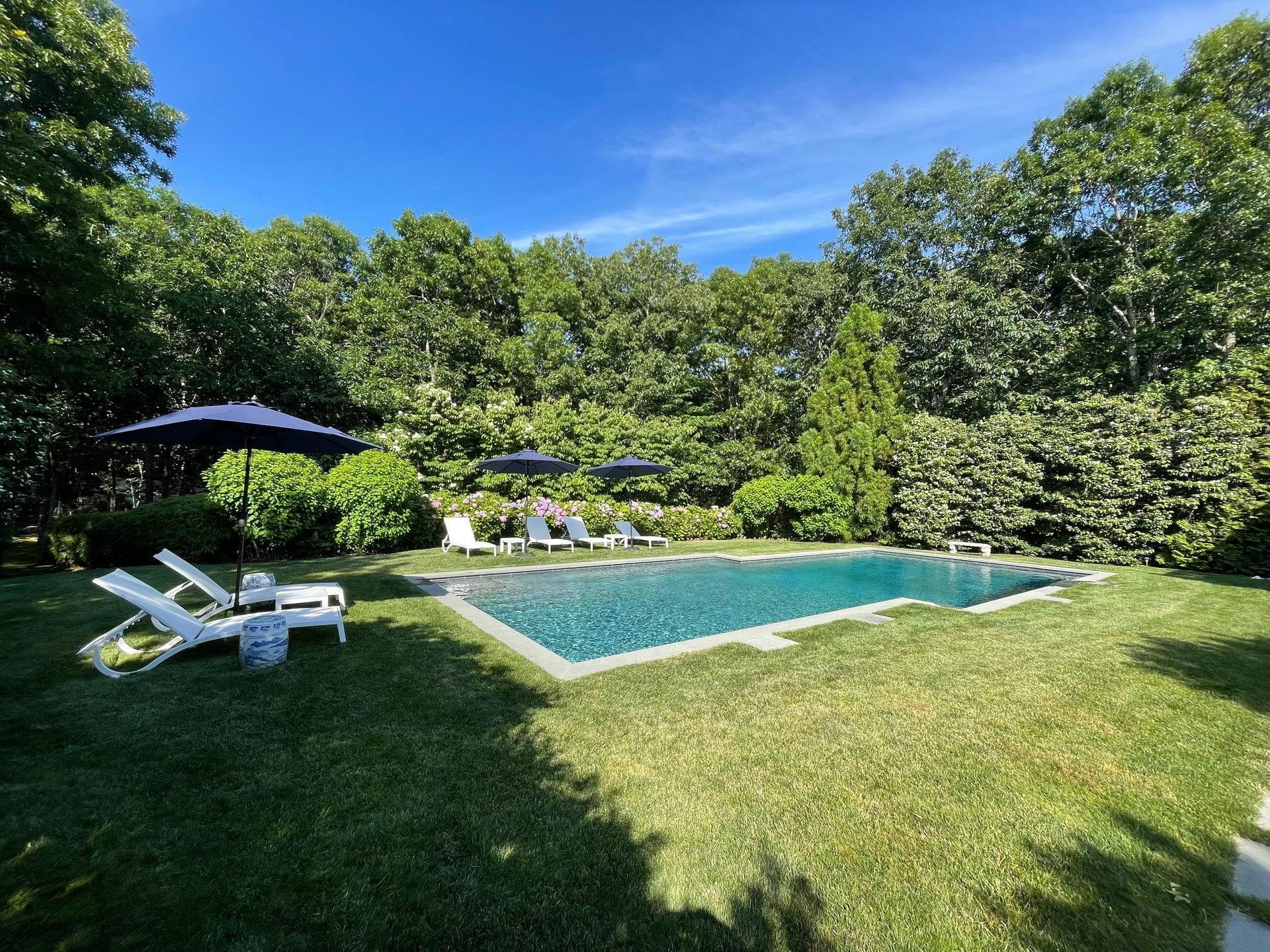 You'll surely enjoy your summer in this quiet cul-de-sac Sag Harbor 5-bedroom, 4.5-bathroom countryside estate that enjoys equal amounts of privacy and access to the Hamptons' nearby beaches, golf, dining, and shopping. A thoughtfully decorated, the elegant decor blends with rustic accents to create a sophisticated, welcoming atmosphere. The primary suite features a marble bath with an air jet tub and a separate shower. The finished lower level of the home includes a gym, home theatre, jacuzzi bath, and steam shower. Outdoors, a sunken 40x18 gunite swimming pool, hot tub, outdoor shower, screened porch, covered dining veranda, and vine-covered pergola with fire pit await amid lush landscaping and plenty of room for relaxing and entertaining. So close to the reserve, trails to freshwater Trout Pond, marinas, secluded bay inlets, and Foster Memorial Long Beach for paddle boarding and kayaking while Sag Harbor Village is a quick 5-minute drive.