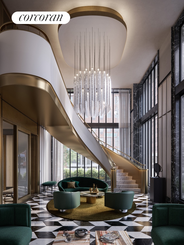 The amenities at 40 East End offer an extension of the already gracious residences and are designed with a focus on convenience and glamour. Adjacent to the lobby, the impressive double-height Parlor Lounge has custom upholstered seating, wet bar, a dramatic chandelier, and a sculptural marble staircase with bronze cladding. The second floor suite of amenities include: The Library, a graciously furnished refuge for out-of-office work; The Game Room with foosball, billiards, table tennis and darts to bring all ages together; The Gourmet Catering Kitchen which services the common spaces, and The Fitness Center featuring state-of the-art exercise equipment and training tools to promote an active lifestyle.