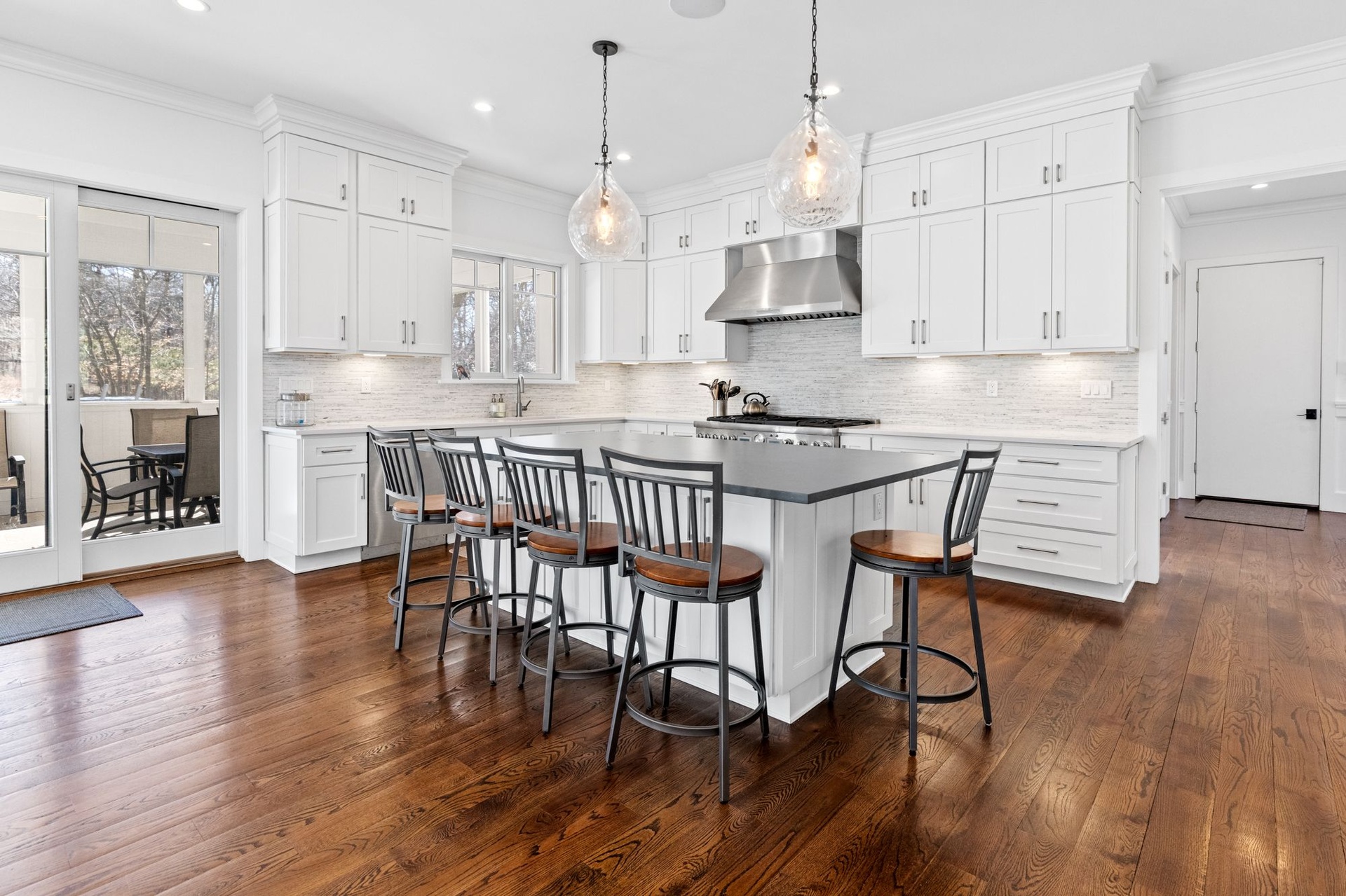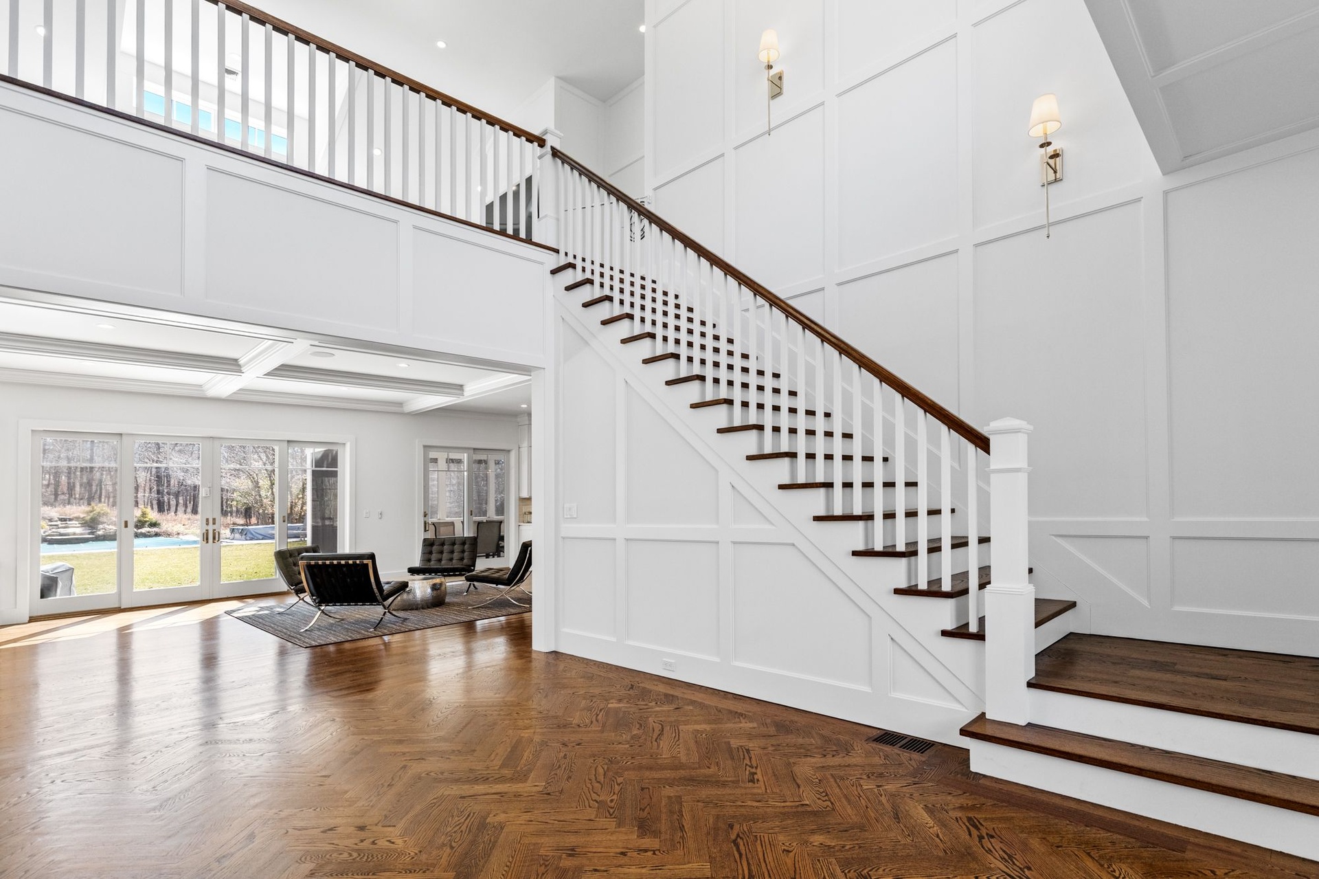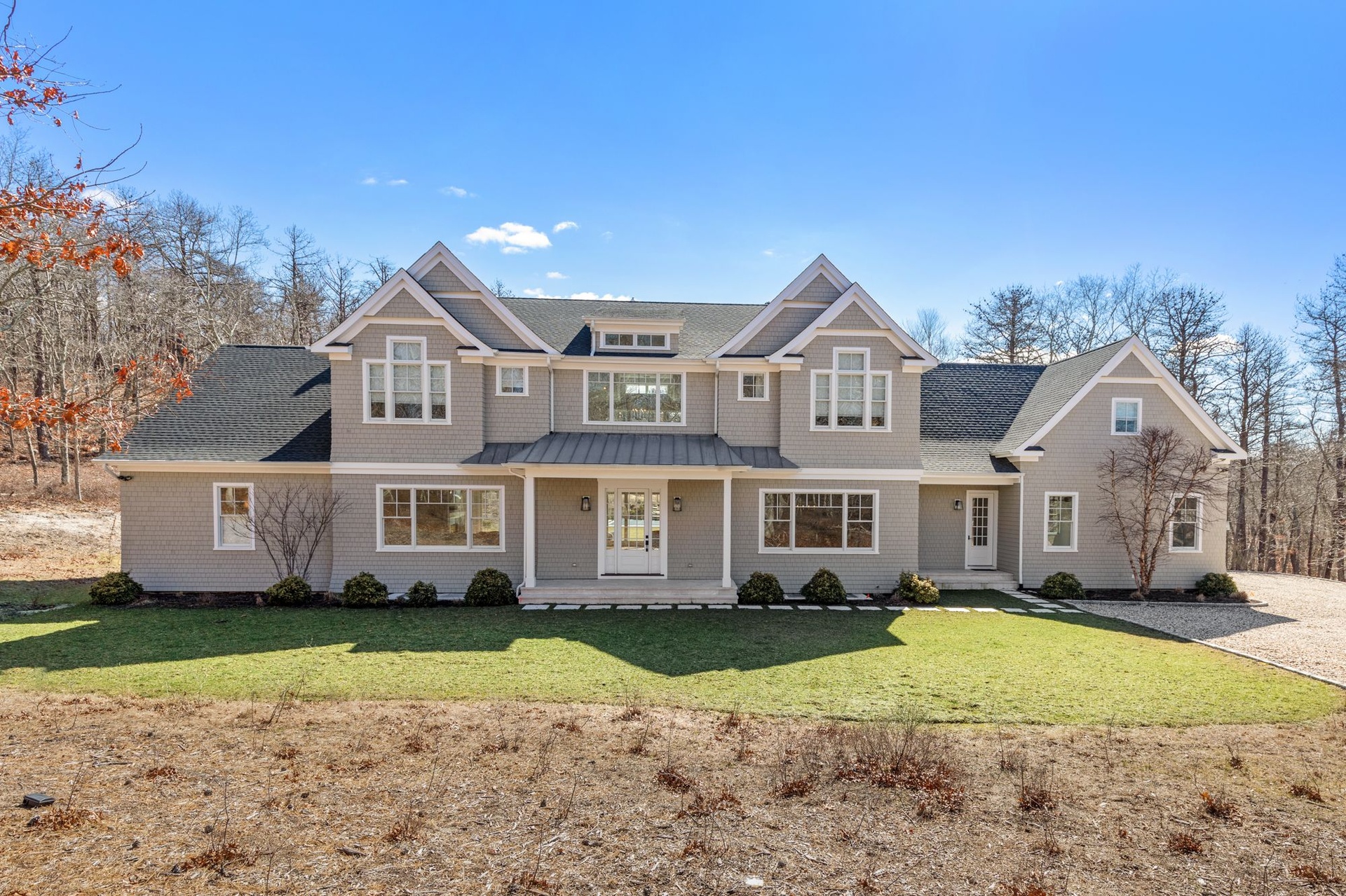 Gorgeous home nestled on 4+ acres on a very private street, this new 6,000 Sq.Ft. house is beautifully built with the finest materials and craftsmanship. A 2-story foyer leads to bright, spacious and open rooms with gorgeous hardwood flooring. A spectacular 1st floor primary suite includes 2 walk-in closets and a designer bathroom with soaking tub, shower and 2 sinks. There is a 2nd primary bedroom suite on the 2nd floor. The bedrooms all have vaulted ceilings and en suite bathrooms. There is a large Great Room on the 1st floor plus a second Family Room on the 2nd floor. A generous screened in porch opens to a massive back patio overlooking a beautiful yard with a 45' in ground heated pool with waterfall, hot tub, fire pit and outdoor shower. The state of the art kitchen is fully equipped and there are 2 laundry rooms. A long driveway leads to an attached 2 car garage with plenty of extra parking.