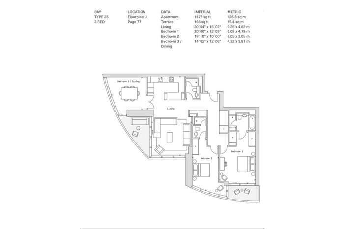 The apartment has been meticulously finished to a high standard, with natural materials and finishes throughout and offers 1471sqft of internal space comprising a large, living and dining area, bespoke designed fully integrated kitchen with a timber veneer finish and stone countertops, three spacious double bedrooms with the master benefitting from an en-suite, a further en-suite to bedroom two and a family bathroom. Storage cupboards in the entrance and fitted wardrobes in the bedrooms provide plenty of storage throughout the property.