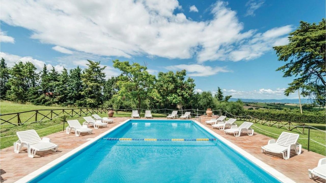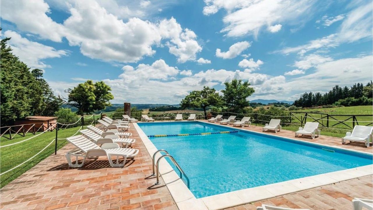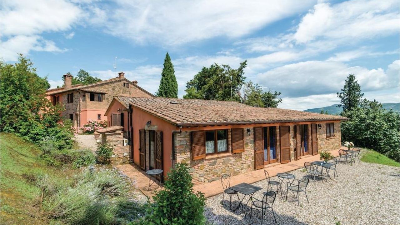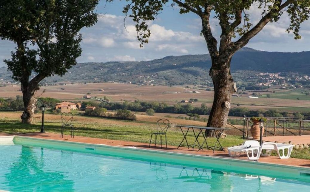 Great holiday farm for sale in Umbria, nearby Castiglion del Lago (Trasimeno Lake). The property is located in nice hilly position in one of the best places in this region of the middle Italy. The plots that surround the houses commands gorgeous views and cover approx. 3 hectars, comprising an olive grove and some arable crops. There is the possibility, though, to purchase more plots.