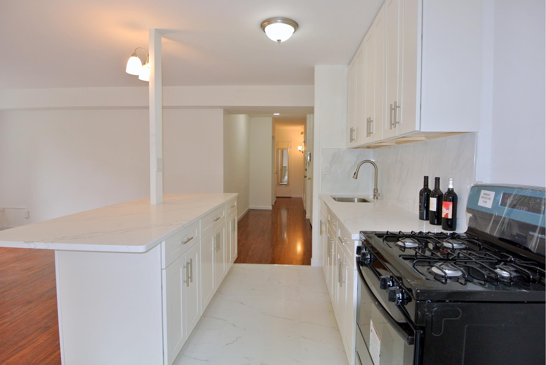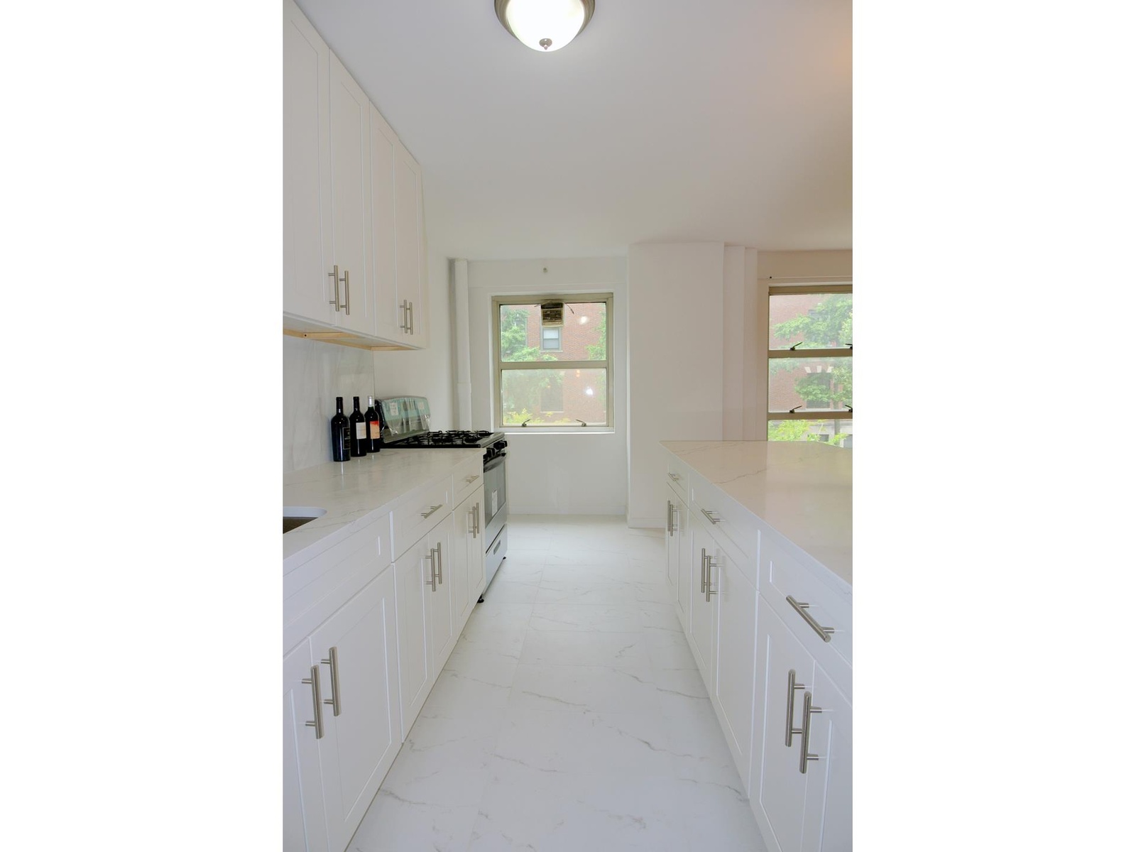 Move in Ready - Bring Your Toothbrush. Charming & Spacious 2 BR, 1 Bath (950 SF Approx), corner apt that has been newly renovated to create an open windowed eat-in-kitchen with island, all new cabinets & marble countertops & floors. Freshly painted, nice new wood floors & a new marble bathroom. Extra high ceilings, plus tons of closets (8 in total) completes this apt.