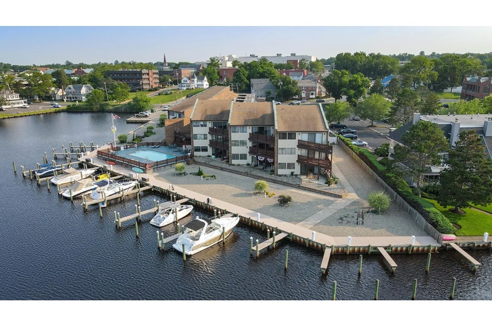 AMAZING WATERFRONT CONDO overlooking the beautiful Toms River. Prime location with breathtaking water views and walking distance to restaurants, cafes, and shops. Enjoy sunsets and cocktails from your balcony. The 3rd floor condo is move in ready. Open floor plan with cathedral ceiling in master BR and living room/den and sliders to huge balcony. Condo has a pool over looking the water, elevator & an assigned boat slip. Two large BR's, 2 full baths, white kitchen cabinets, & a master bath and large laundry room. Storage area outside and inside the unit.