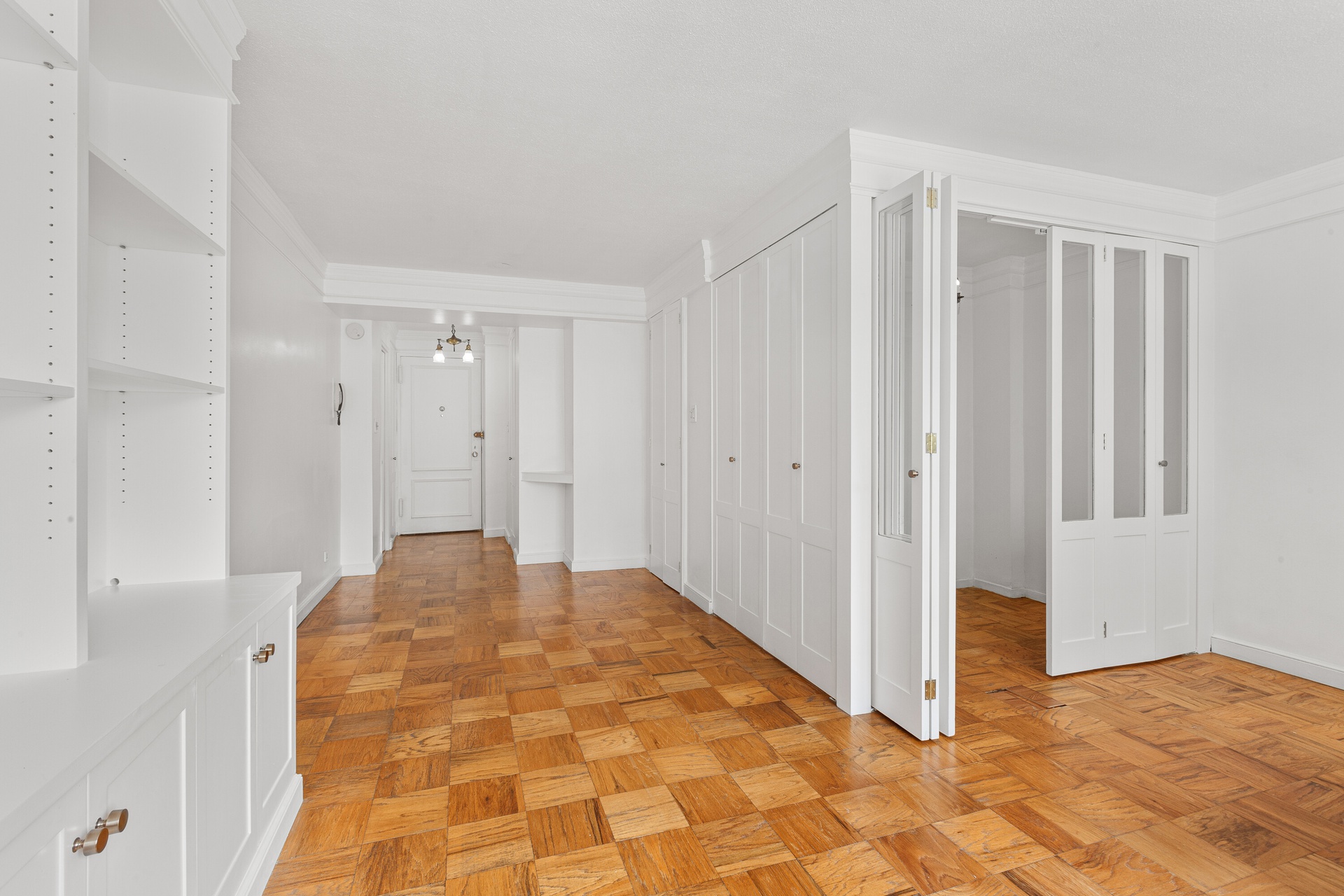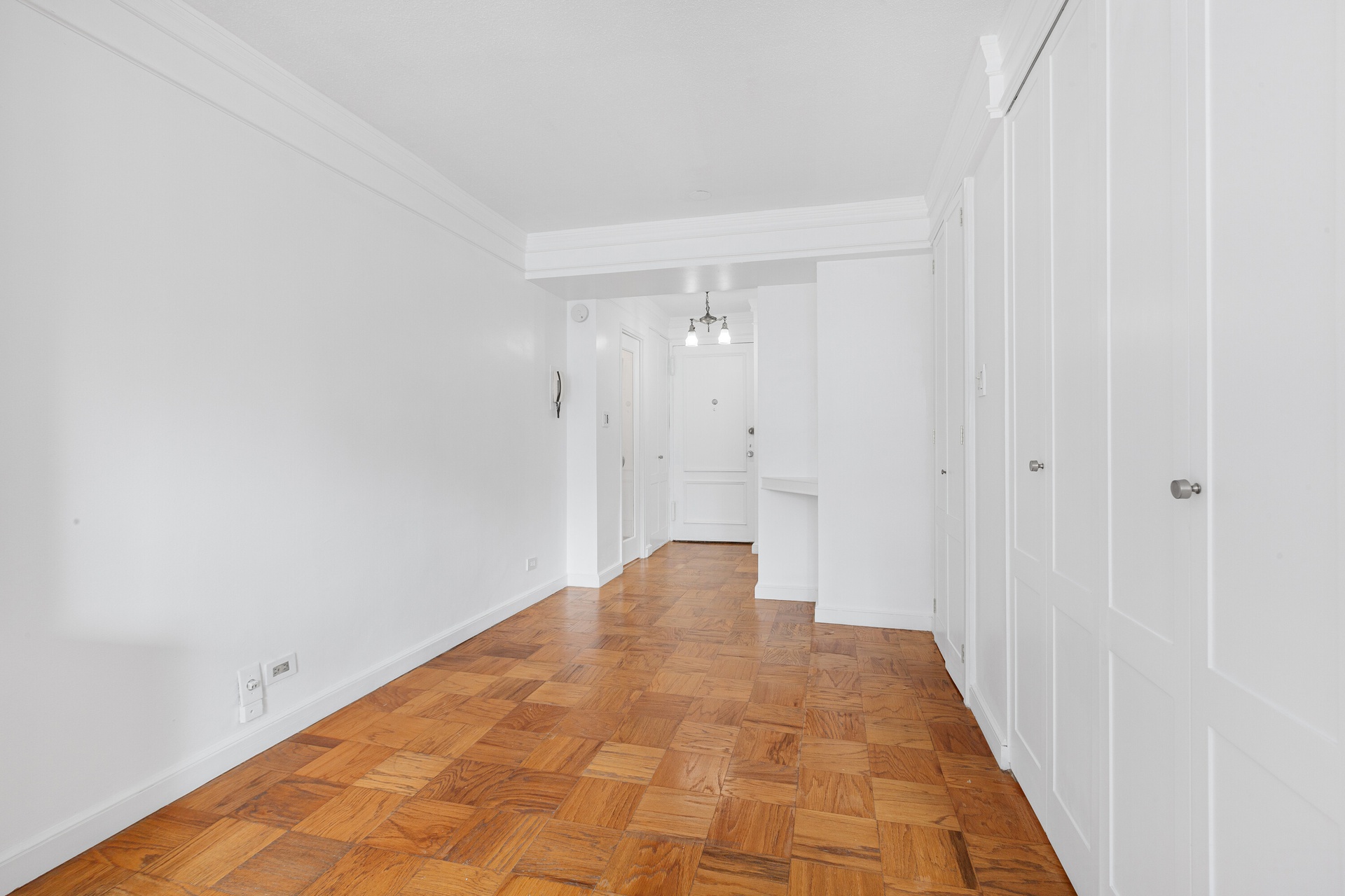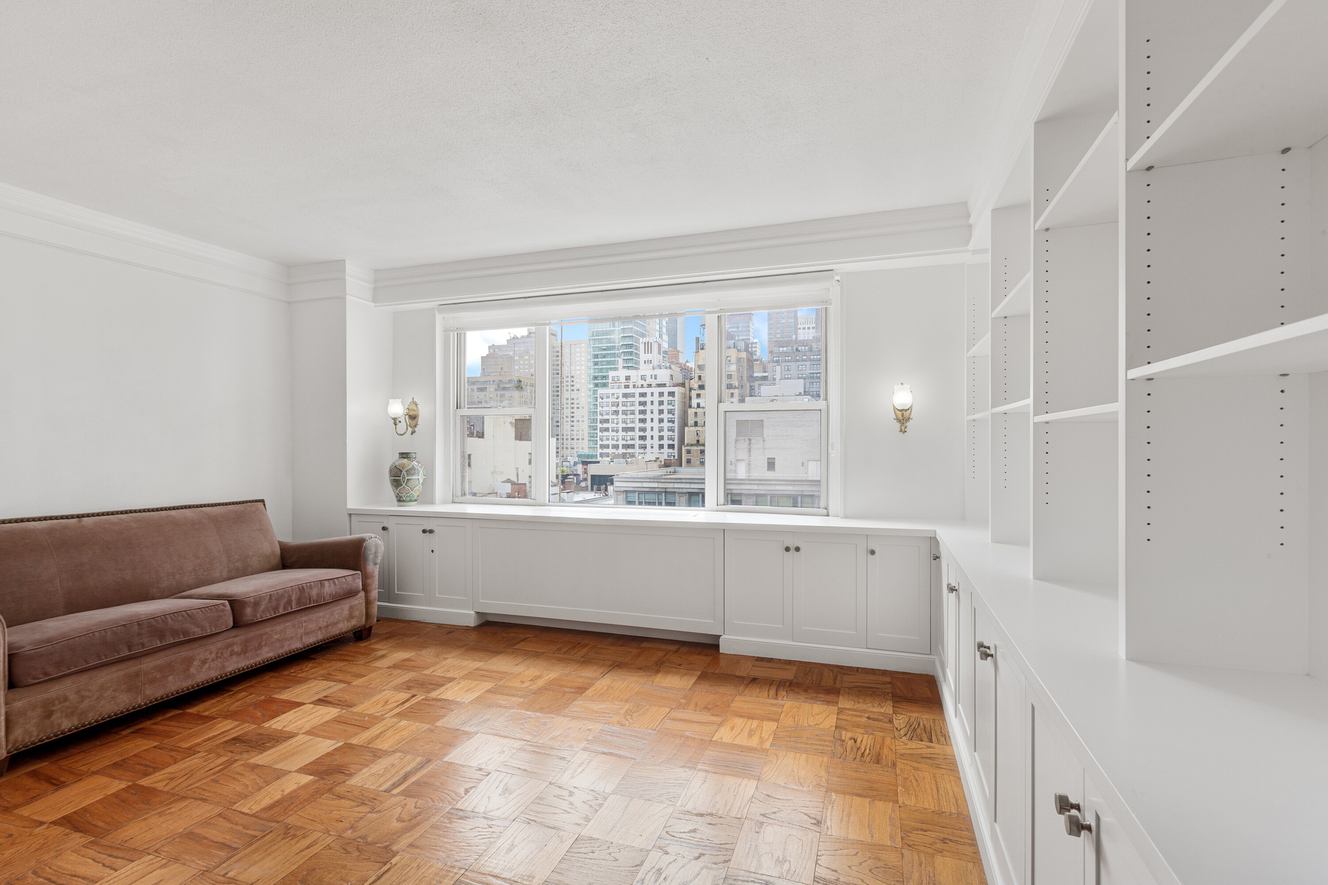 Well come to Apartment 10-F your new home , walk in to great space with in closed Bedroom, spacy living room and a cute dining area, Open South City Views , Hardwood Floor, Closets Galore ant wall of under the window storage cabinets.