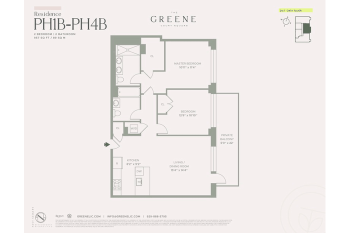 The exquisitely curated amenity spaces at The Greene first welcome residents home through a charming landscaped entry courtyard spanning an impressive 10,000 square feet, creating an immediate Zen setting with lush plantings, shaded seating areas, and dog run. The second floor amenity level includes a state-of-the-art fitness room opening directly to outdoor yoga space, a children’s playroom with outdoor play area, several game and work lounges, and outdoor terrace with BBQ grills. There is a third level of amenities on the rooftop with an indoor Sky Lounge that flows out onto a rooftop terrace revealing commanding city views. To complete the abundant offering are a 24/7 doorman, live-in super, Latch intercom system, bicycle storage at the front entry Gatehouse, a dedicated Amazon Hub locker, cold storage, package room, and on-site garage.