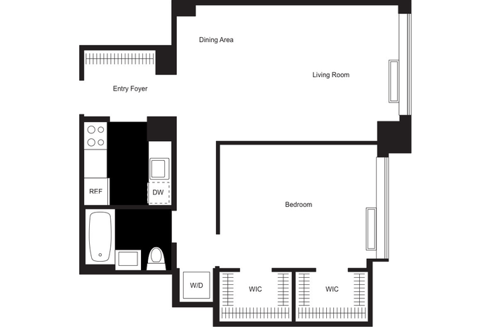 Lovely 1 Bedroom, 1 Bath with two walk-in closets, in-home washer & dryer, upgraded strip wood flooring, stainless steel appliances, solar shades, and southern exposure with views of the city.