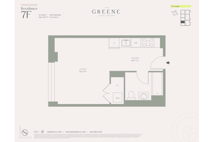 The exquisitely curated amenity spaces at The Greene first welcome residents’ home through a charming, landscaped entry courtyard spanning an impressive 10,000 square feet, creating an immediate Zen setting with lush plantings, shaded seating areas, and dog run. The second-floor amenity level includes a state-of-the-art fitness room opening directly to outdoor yoga space, a children’s playroom with outdoor play area, several game and work lounges, and outdoor terrace with BBQ grills. There is a third level of amenities on the rooftop with an indoor Sky Lounge that flows out onto a rooftop terrace revealing commanding city views. To complete the abundant offering are a 24/7 doorman, live-in super, Latch intercom system, bicycle storage at the front entry Gatehouse, a dedicated Amazon Hub locker, cold storage, package room, and on-site garage.