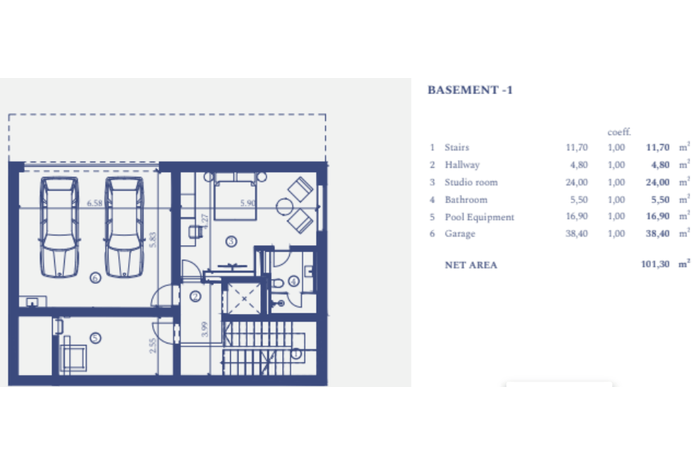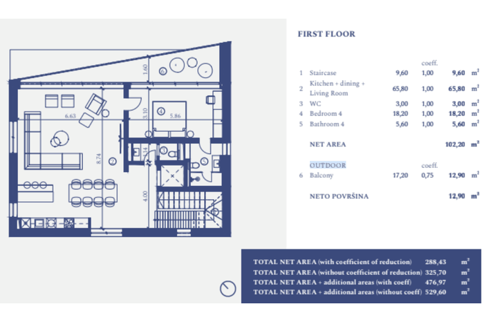Villas of this type are located on the south high ground, and have a perfect view of the sea and sunset – which you can enjoy from your own infinity pool Villa consists of 4 bedrooms, studio room, 5 bathrooms, open space living room with a fantastic view, a two car garage, infinity pool, rooftop terrace with an outdoor kitchen and a garden.