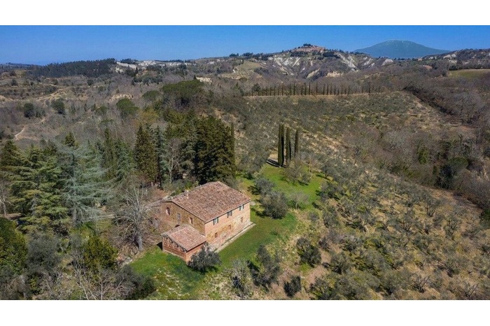 52-hectare farm with characteristic farmhouse dating back to the 15th century, located in a dominant position overlooking the beautiful landscape of the Crete Senesi.