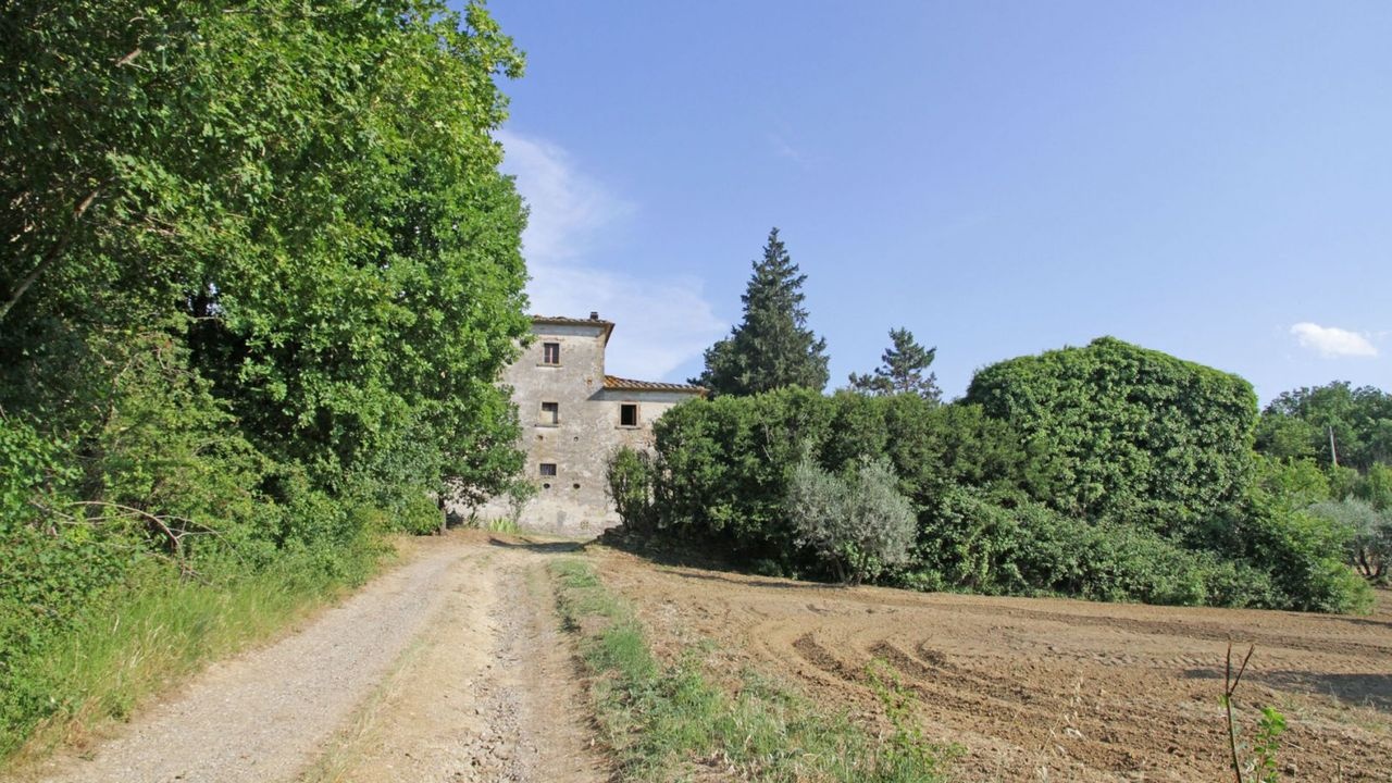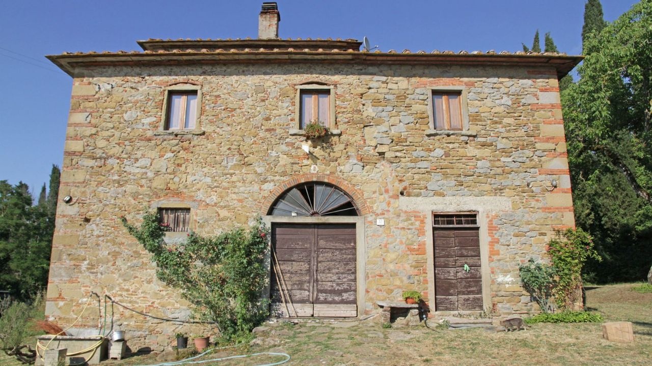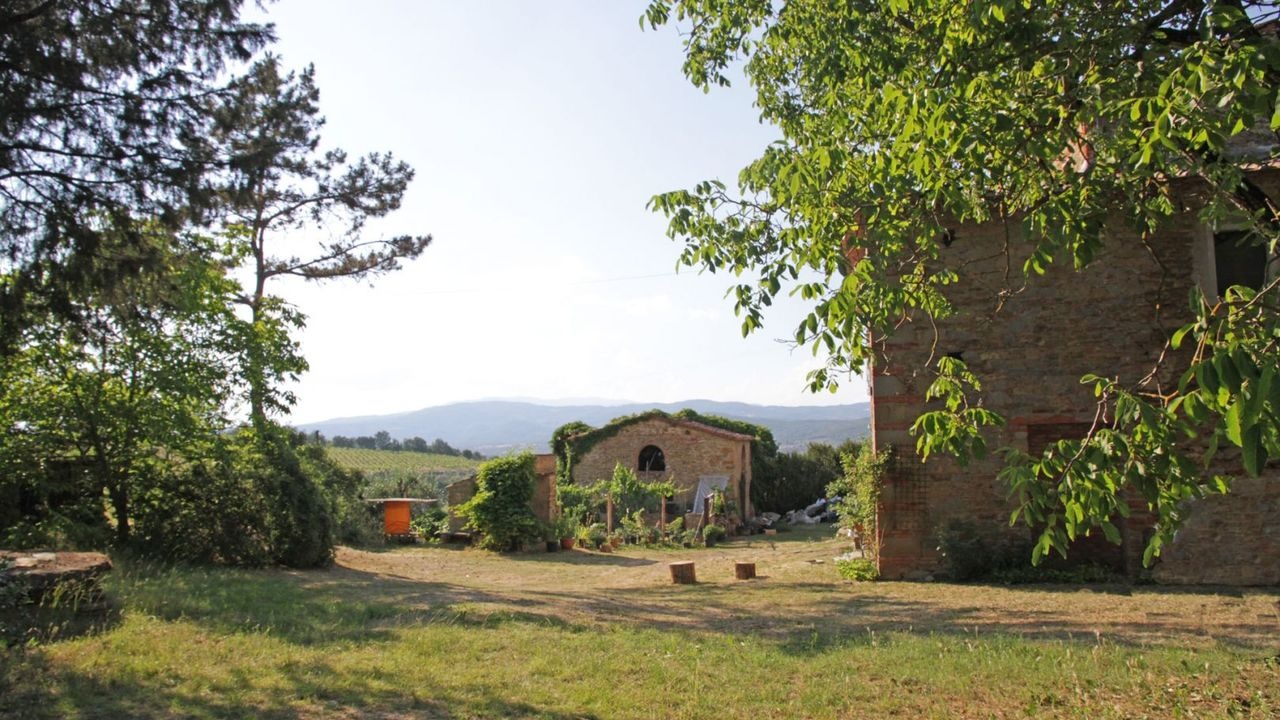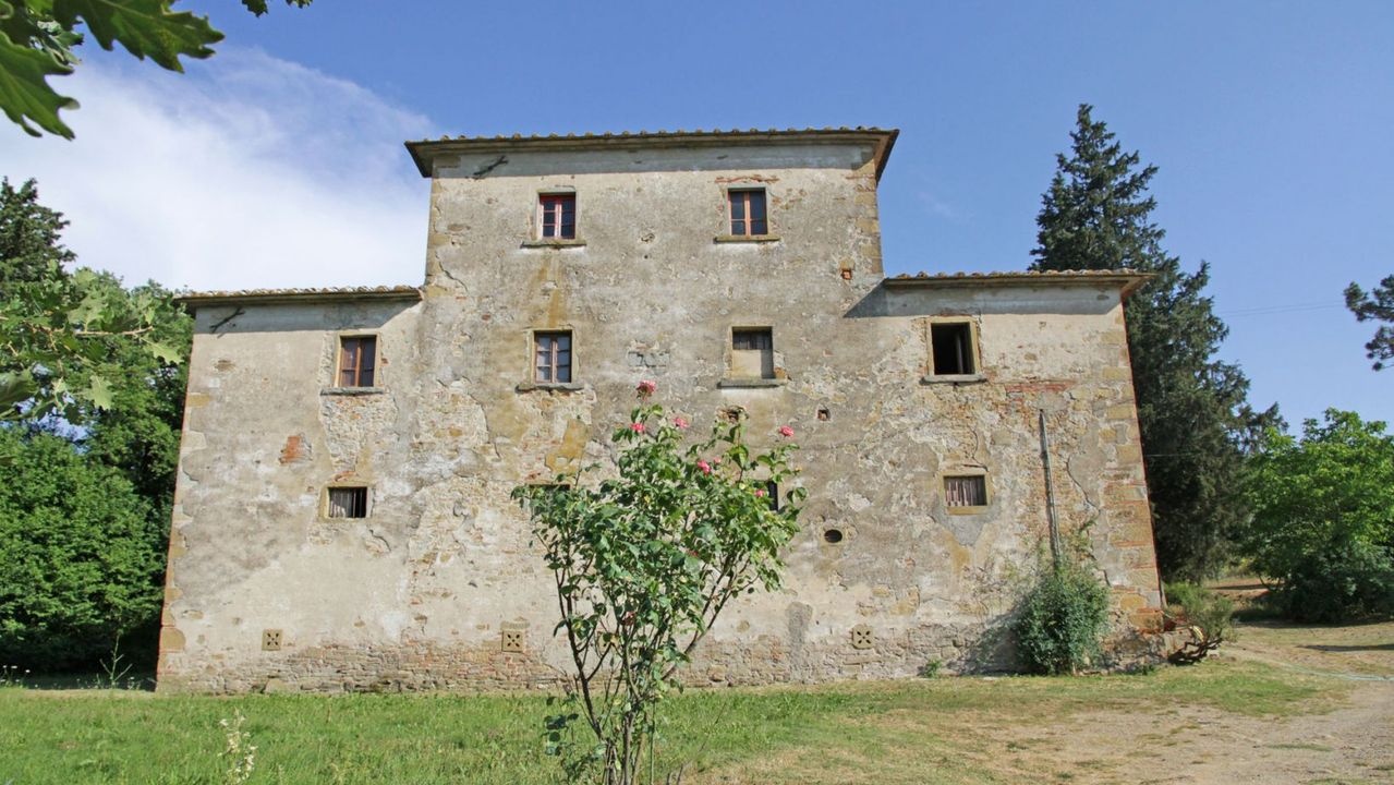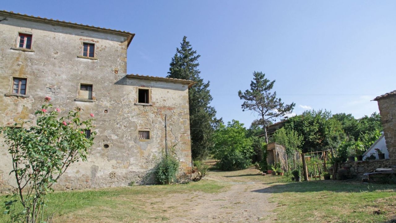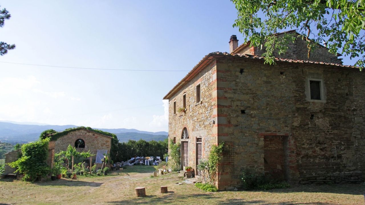 This ancient farm for sale is located in a panoramic position in the Tuscan hilly countryside, just 8 km from the historic center of Arezzo.