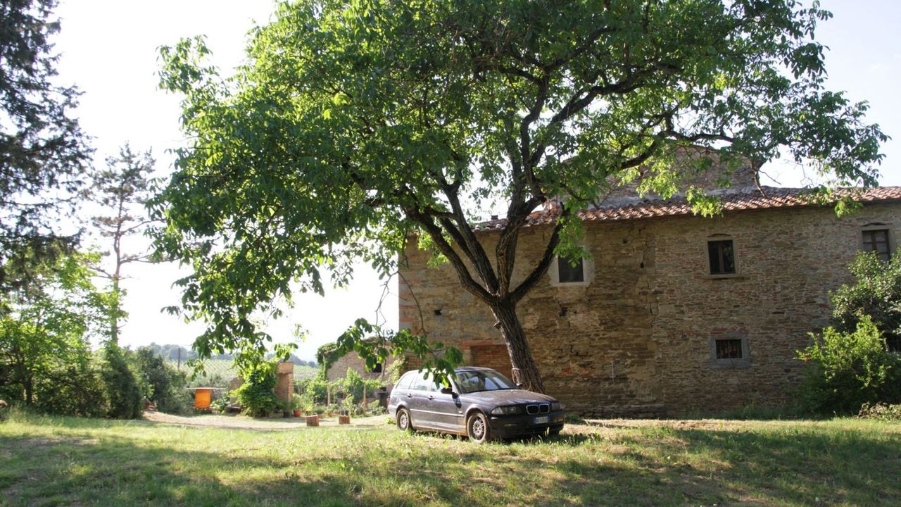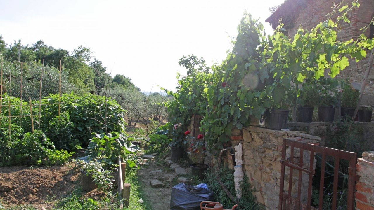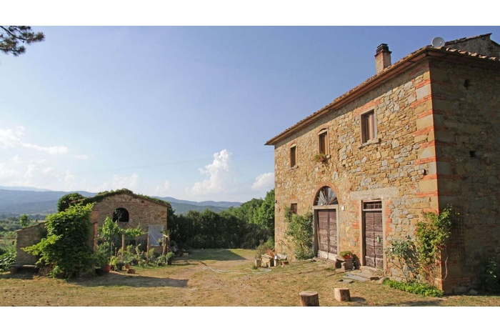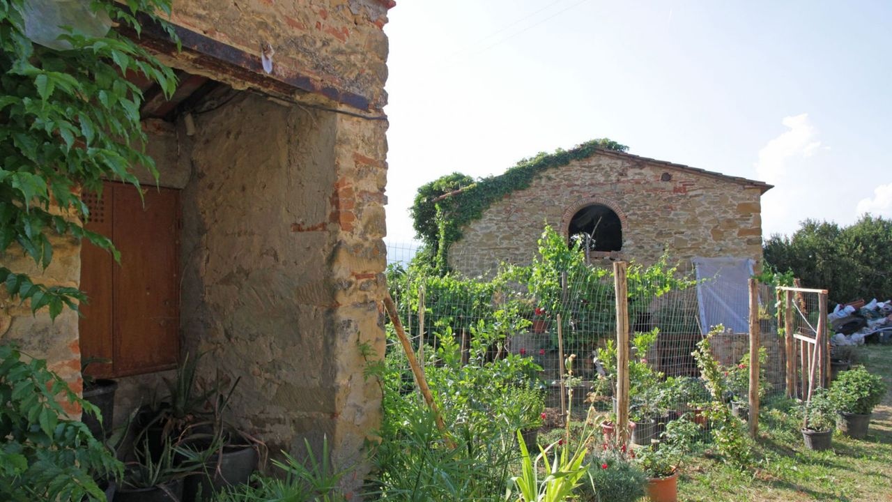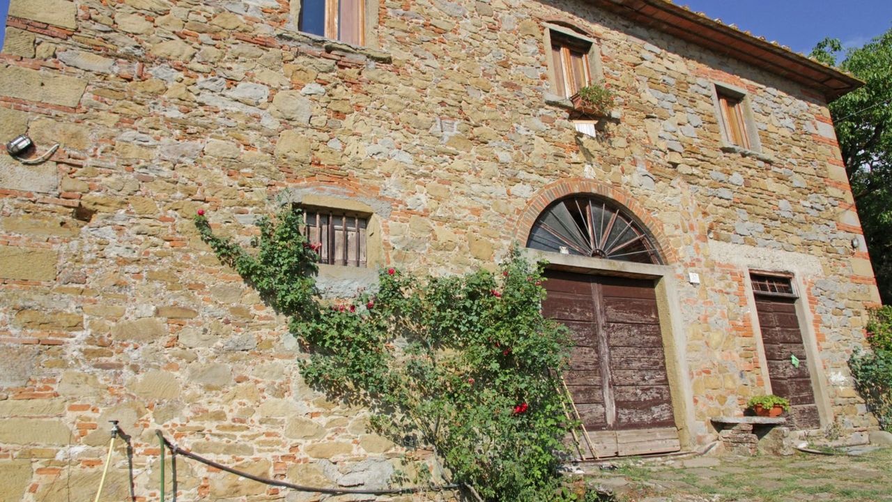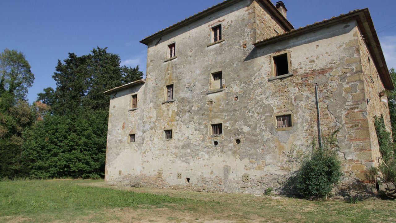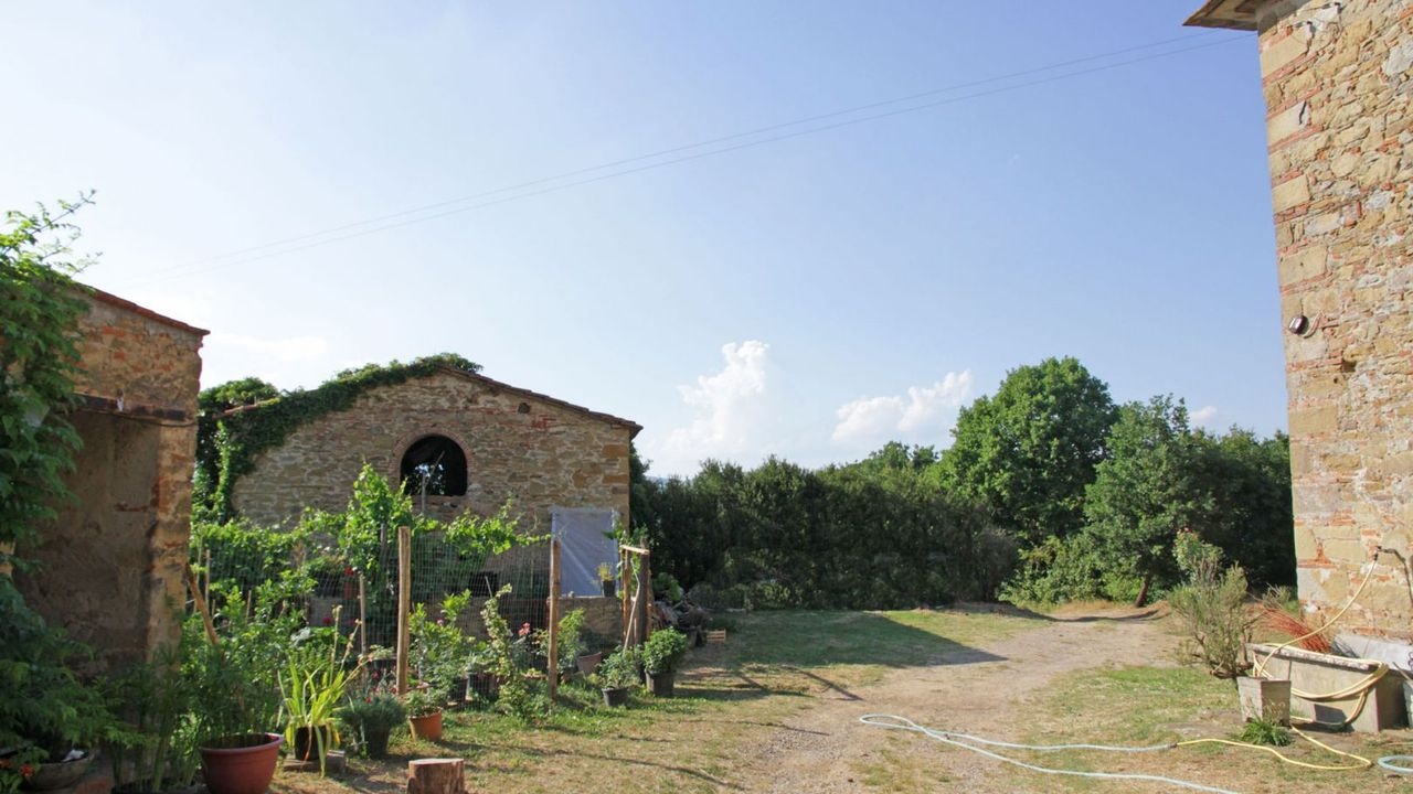 This ancient farm for sale is located in a panoramic position in the Tuscan hilly countryside, just 8 km from the historic center of Arezzo.
