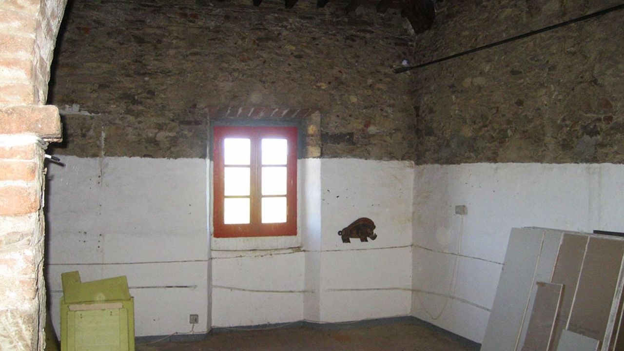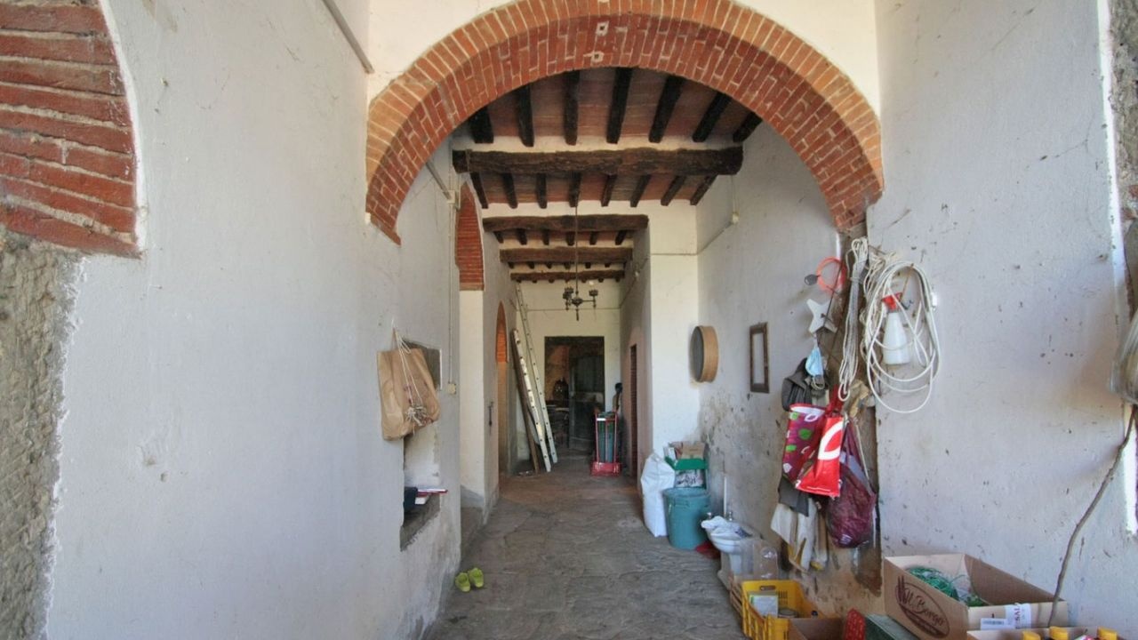 A private dirt road leads through olive groves and vineyards and gives access to the property which consists of 3 independent stone buildings to be restored: the main farmhouse of about 535 square meters, the former pigsty of 72 square meters. and a building of 110 square meters. where in the past tobacco was dried, a well and 15 hectares of land.