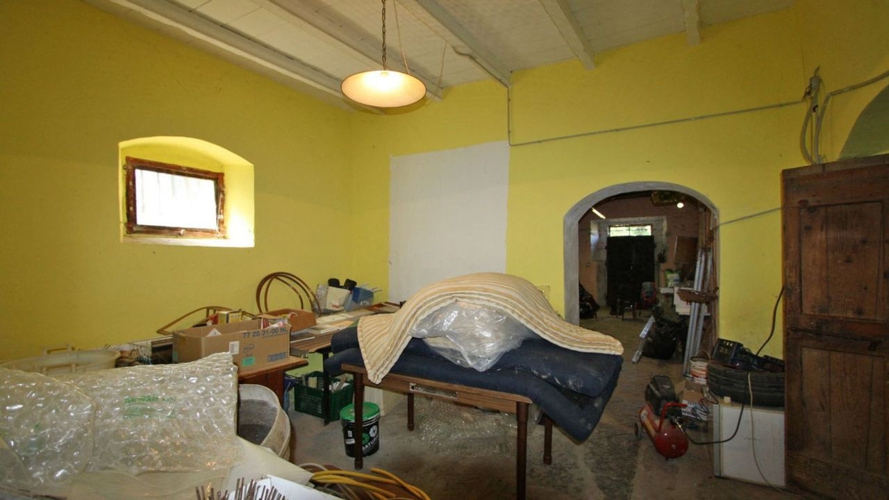 The ground floor consists of a long corridor that gives access to storage rooms and stables. An internal stone staircase leads to the first floor where we find a beautiful living room-kitchen with original fireplace, scullery, 4 large bedrooms and 1 bathroom.