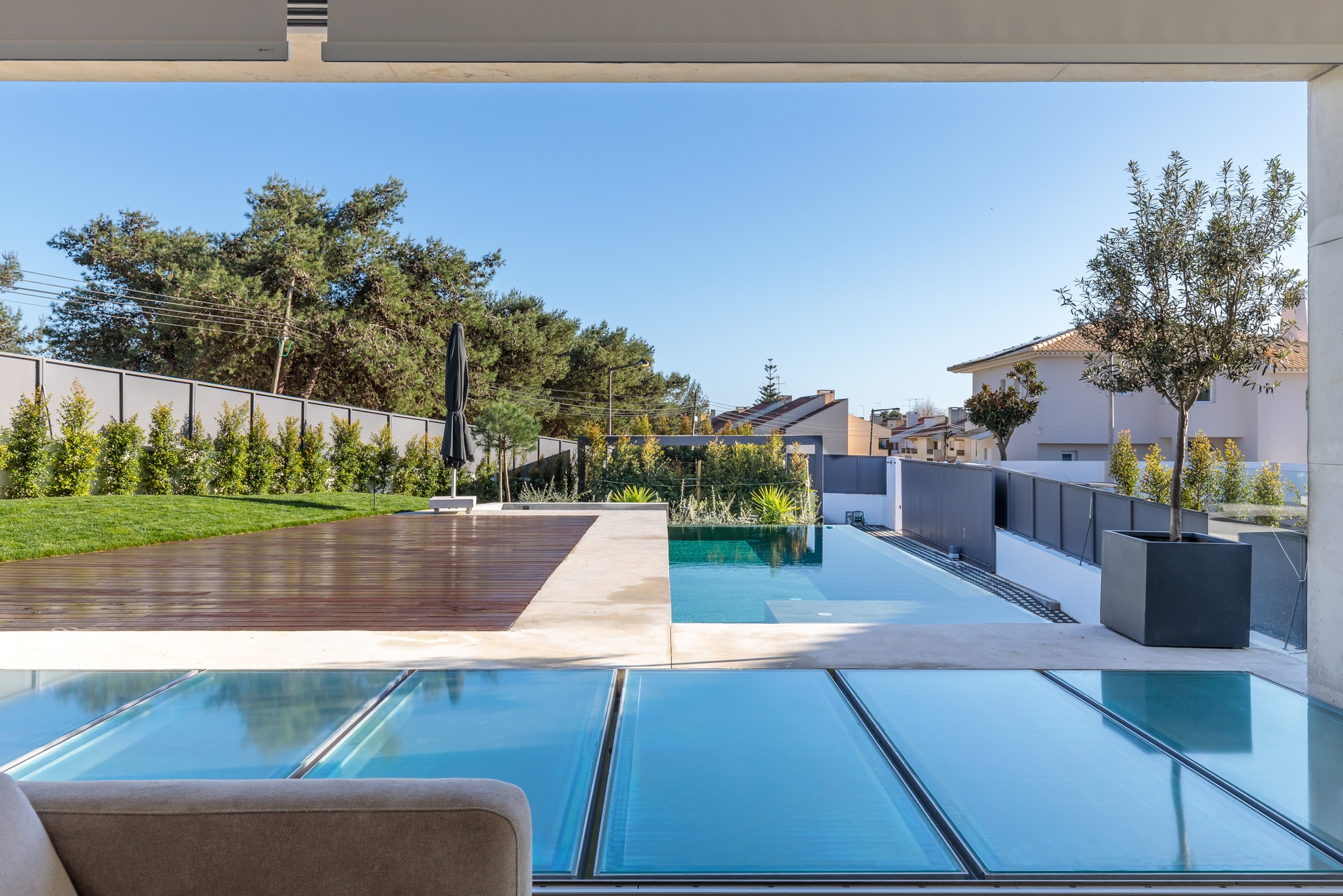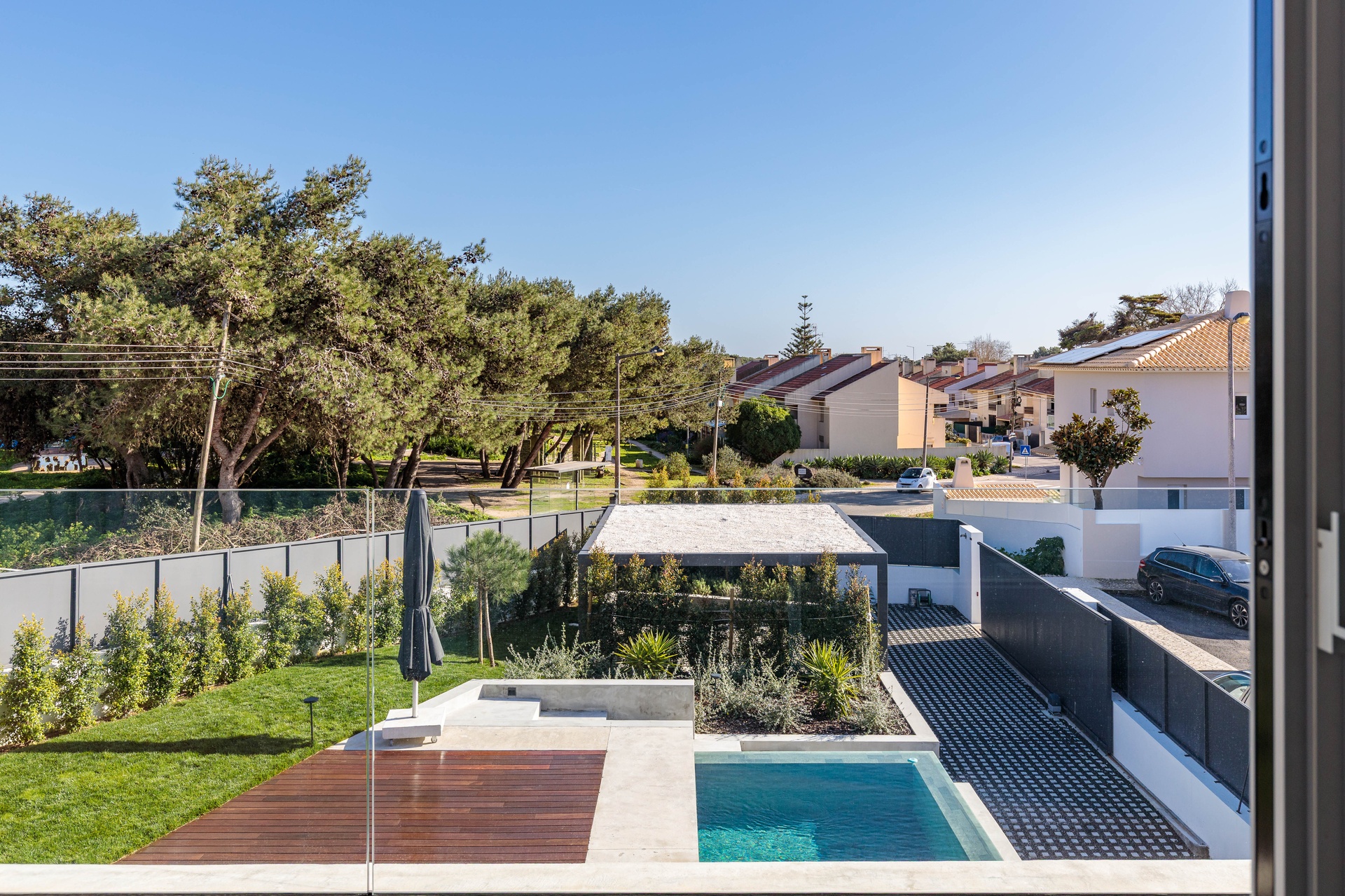 The house is situated in a prime location that offers privacy and shields it from the neighbouring urban environment, with the project extending to the south and west to protect against north winds. This property is located in a safe and tranquil area, surrounded by gardens and abundant vegetation. It's just minutes away from iconic landmarks such as Serra de Sintra, Praia do Guincho, the historic center of Cascais, and key access points, making it one of the most desirable places to live in Cascais today.