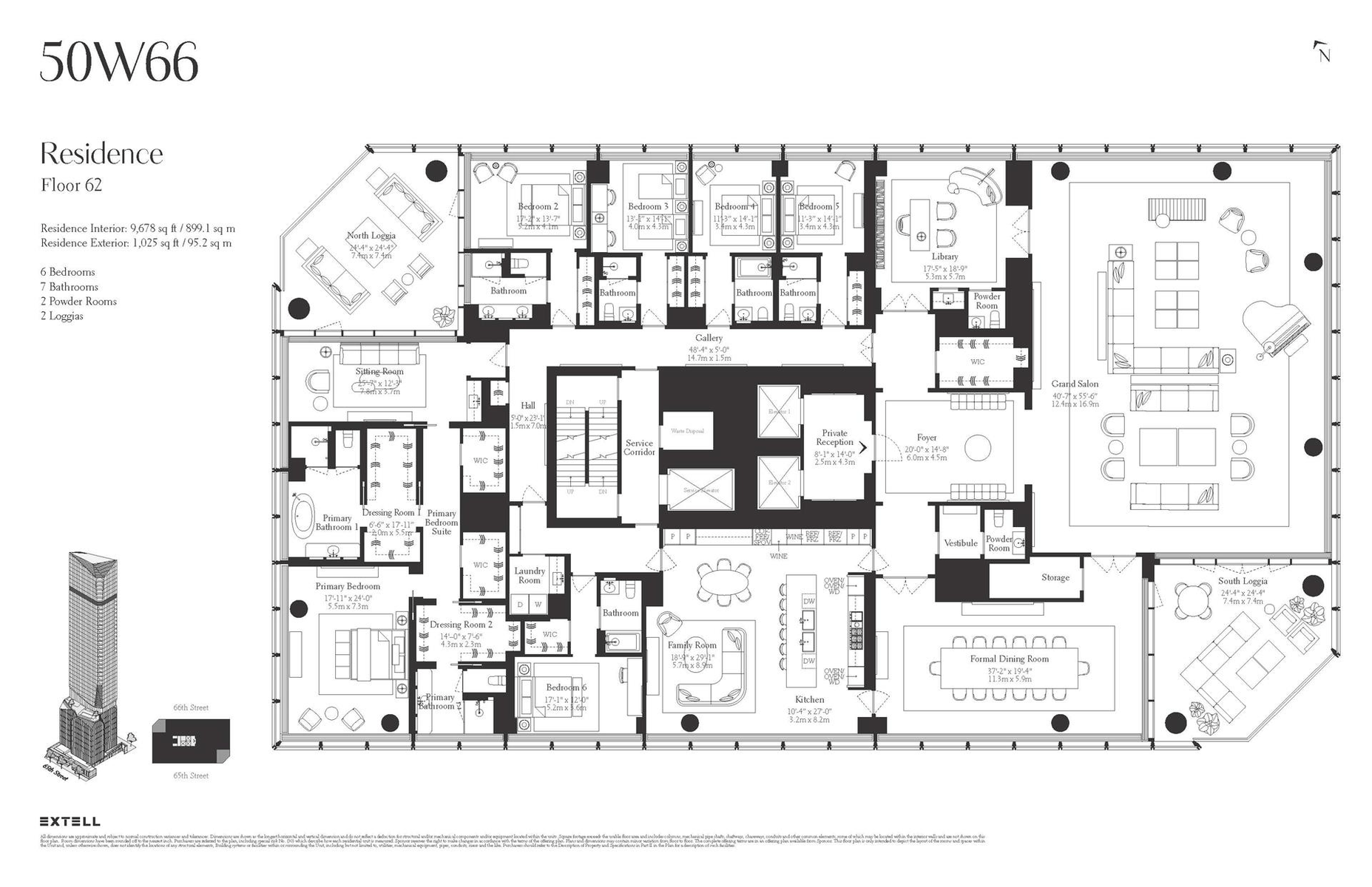 Tower residence 62 is a full floor home spanning 9, 678 interior square feet and 1, 025 square feet of outdoor space spread across two private loggias.