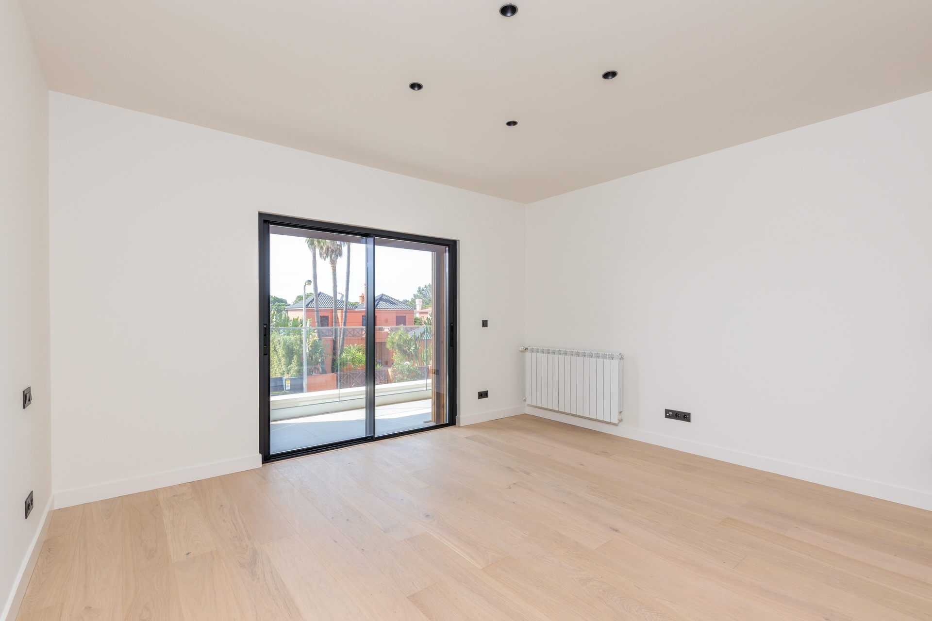 The first floor offers three beautifully appointed bedrooms, including a luxurious master suite with a walk-in closet, a private bathroom, and access to a balcony overlooking the property. Two additional suites, each with its own bathroom, provide plenty of space and privacy. There’s also a dedicated office, perfect for working from home or personal projects.