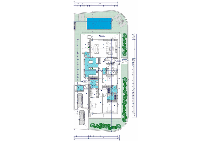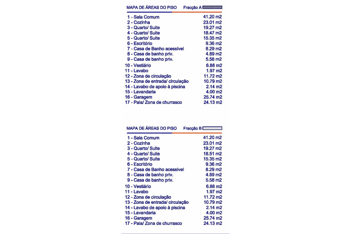 Living Room: 41.20 m2 Kitchen: 23 m2 Laundry Room: 4 m2 Master Suite: 19.27 m2 Bedroom/Office: 9.36 m2 Suites (2): 18.47 m2 and 15.35 m2 Covered Porches: 36 m2 Garage: 25.74 m2