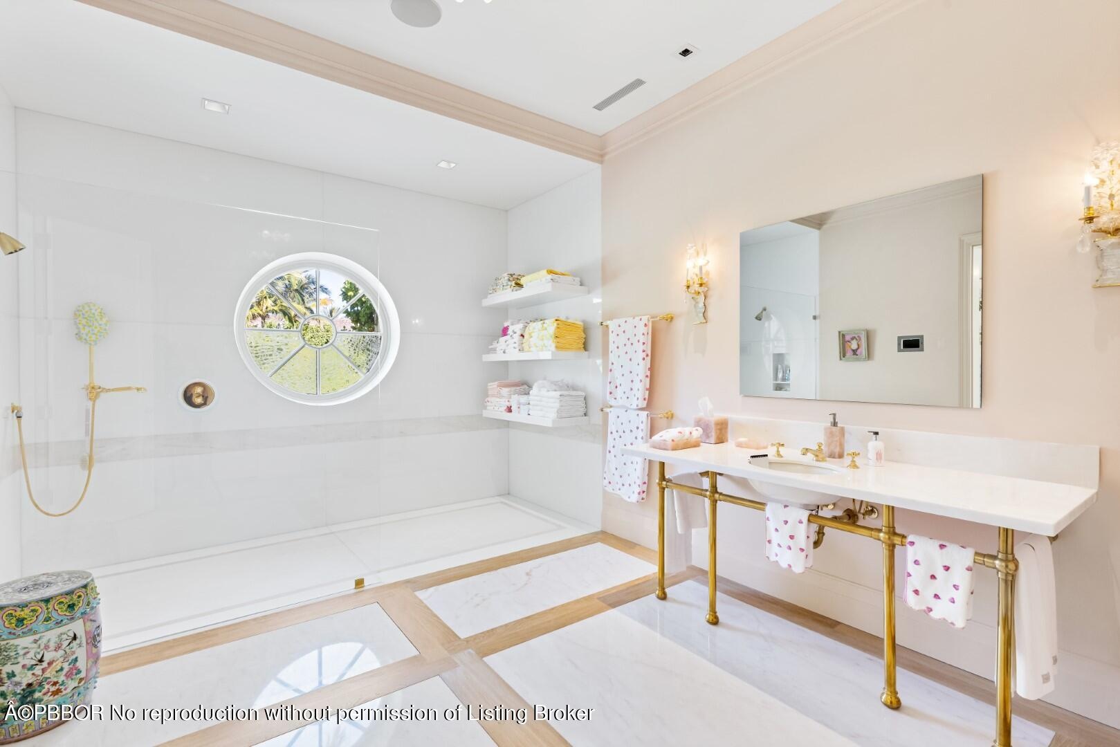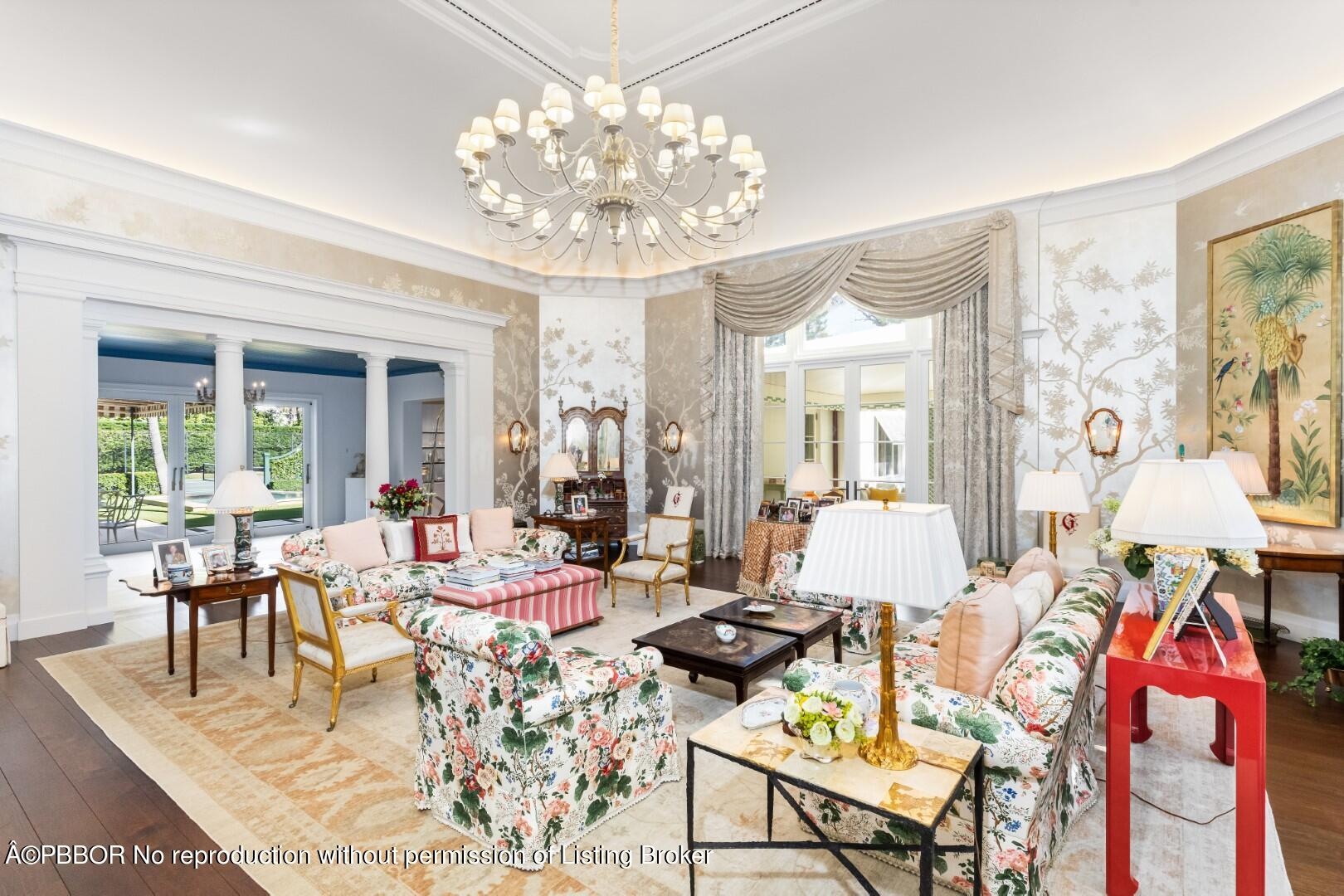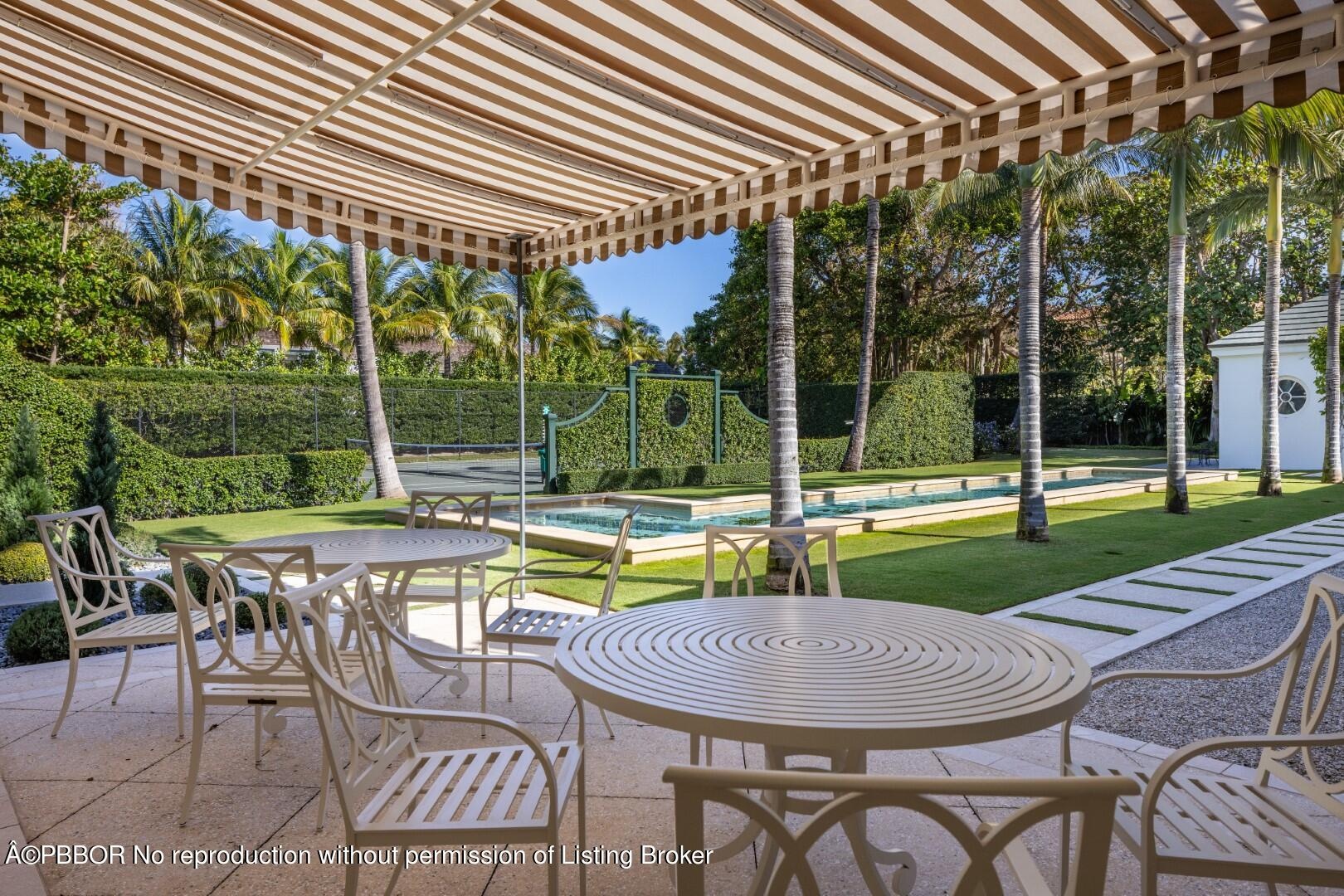 Fantastic 1.3+/- acre Estate Section property with fabulous clay tennis court and two separate guest houses. Sunny and bright Quintessential Palm Beach Estate with stunning detailing throughout. Immaculate grounds are gorgeously landscaped. Elegant, gated entry with circular drive and ample parking. Separate service parking and 2 car garage. Gorgeous domed skylight and marble flooring in foyer. Beautiful living room with hardwood flooring, soaring ceilings, and French doors. Stunning lattice detailing surrounds formal dining room. Gourmet, light and bright eat-in kitchen with oversized chef's island and sunny breakfast nook. Large first floor Primary Suite with stunning bath. Beautifully remodeled tennis house features terrazzo flooring, living and dining area, kitchenette, and spiral staircase. Fabulous outdoor spaces include gorgeous covered loggia, beautiful pergola, fountains, patios, and balconies. Additional highlights include lap pool, generator, office, and family room with fireplace.