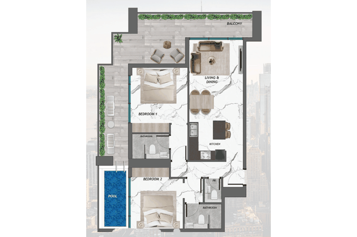 Luxurious Pool: Dive into luxury with the exclusive pool facility, offering a refreshing oasis for residents to unwind and enjoy leisurely moments. The pool area is meticulously designed to complement the overall aesthetic of the building.