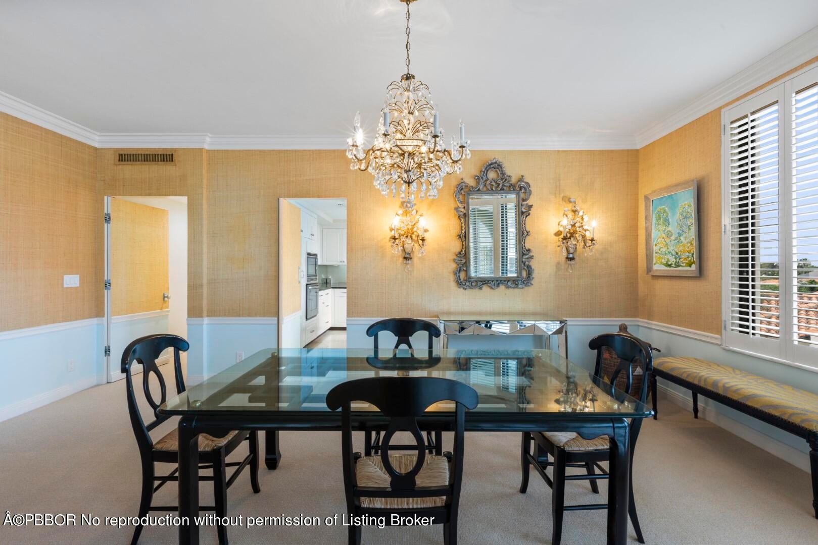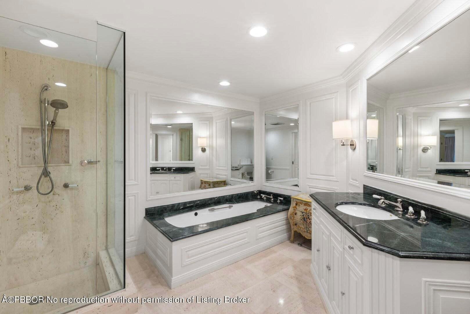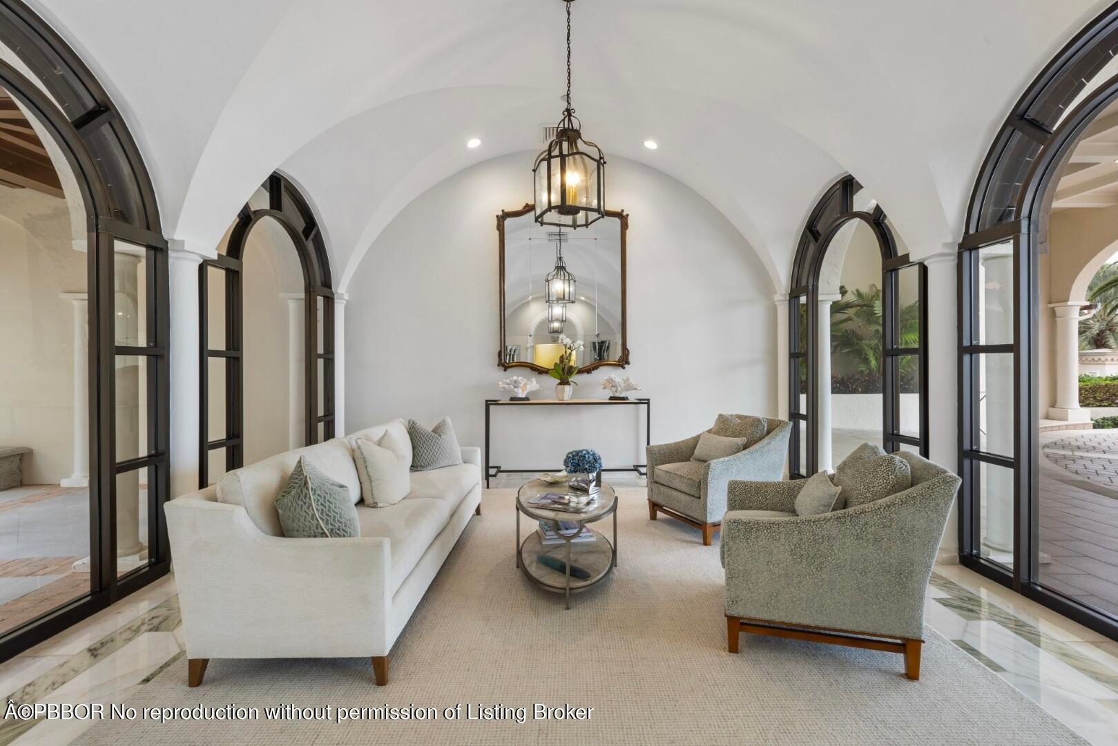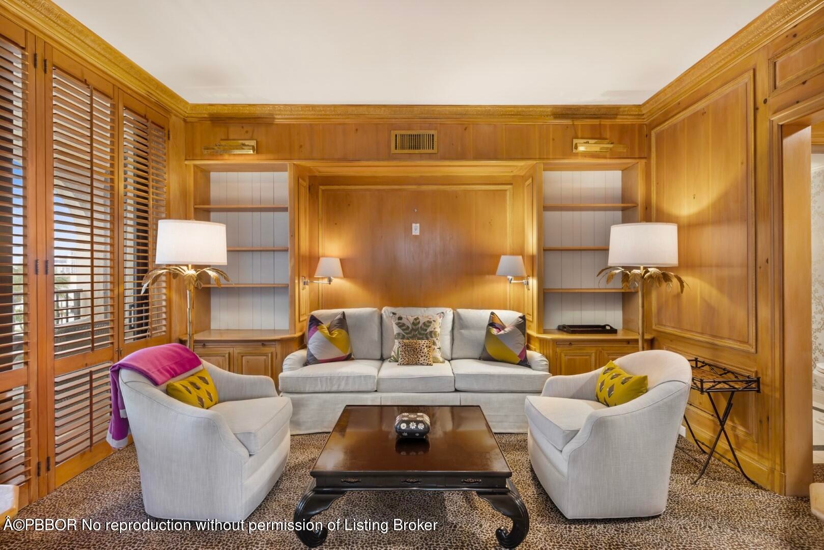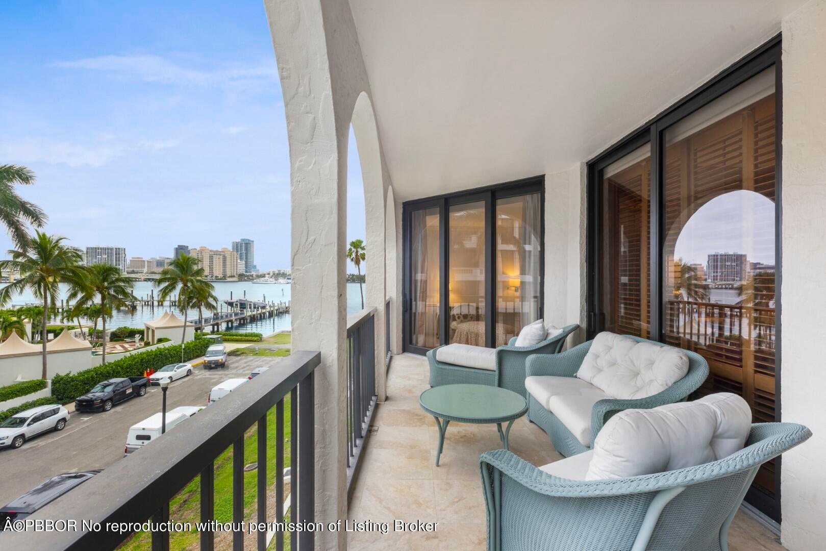 Enjoy Palm Beach luxury condo living with this beautiful 3BR/2.1BA unit in the fantastic full-service L'Ermitage. Highlights include beautiful, paneled library with built-ins, gourmet eat-in kitchen, and gorgeous views of the Intracoastal. Large primary suite with dressing area and dual walk-in closets. Spacious, light-filled great room perfect for entertaining. Additional features include two balconies, private elevator vestibule, impact windows, and poolside cabana. Located in the center of town, the L'Ermitage features beautiful courtyard entry, full-time manager, serene pool area, exercise facilities, and tennis court.