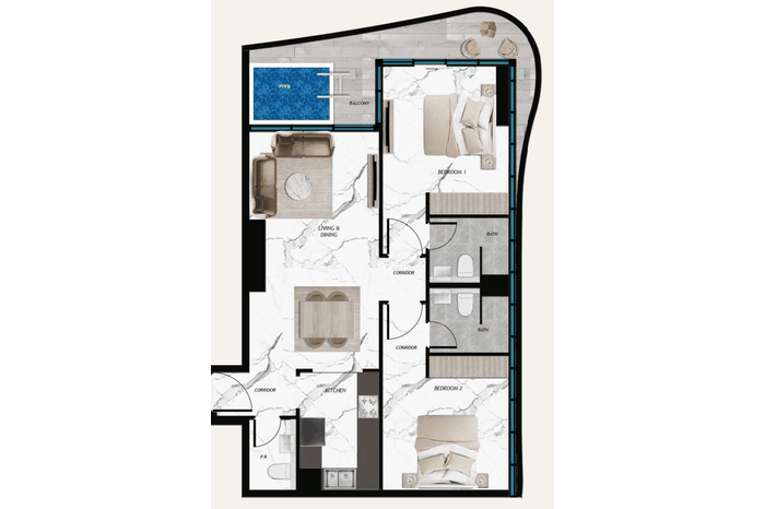 2-BEDROOM RESIDENCES WITH POOL: SAMANA BARARI VIEWS - SOPHISTICATED LIVING, UNRIVALED SPACE