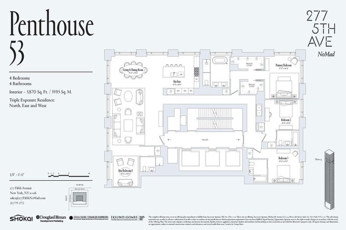 Unparalleled luxury awaits in Penthouse 53 at 277 Fifth Avenue, an incredible four-bedroom, four-bathroom home spanning 3,870 SF with unforgettable views to the North, East, and West.