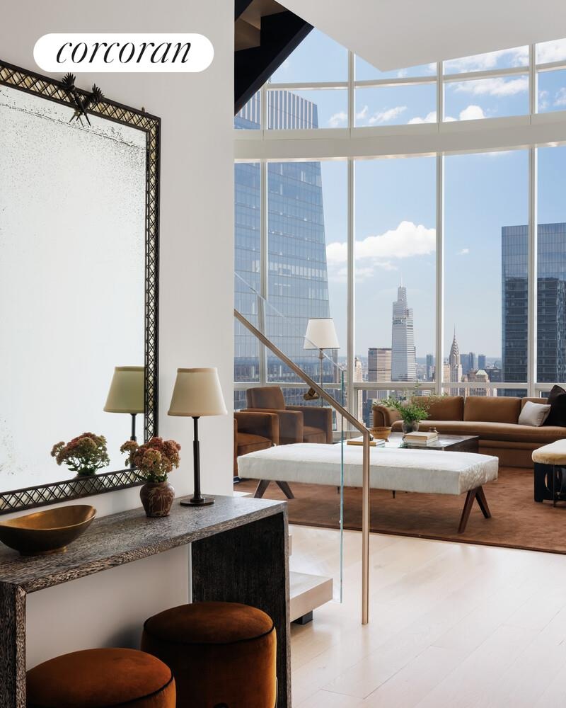 Introducing a reimagined Penthouse 88D at 15 Hudson Yards. Perched nearly 900 feet above Manhattan, this museum-quality duplex penthouse spans 5,139 SF with soaring ceilings, sweeping curves of glass, and breathtaking panoramic views of the Hudson River, Chrysler Building Freedom Tower and beyond.