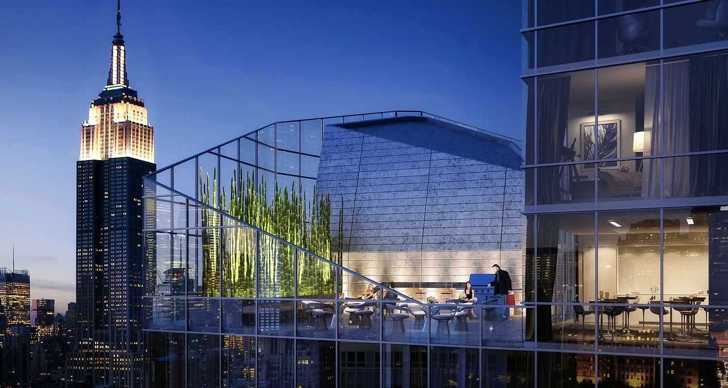 This unique, five bedroom, full-floor residence with private outdoor space is boasting spectacular unobstructed 360-degree views of New York City and 5,000 square feet of indoor plus outdoor space. It is located in the pinnacle of the striking glass high-rise tower designed by Christian de Portzamparc.